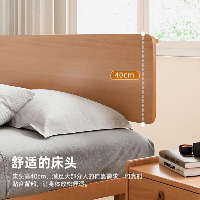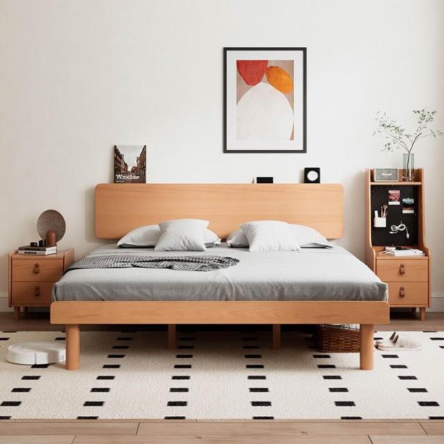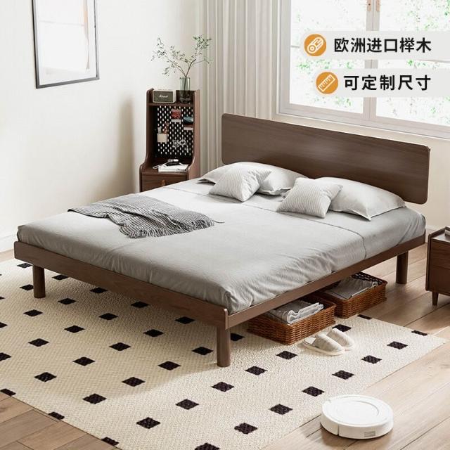 全實木榉木床雙人北歐日式1.5米1.8床架現代簡約北歐簡約風小戶型