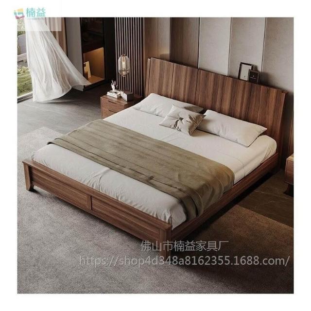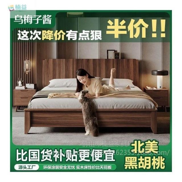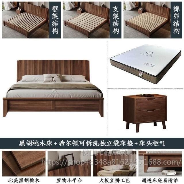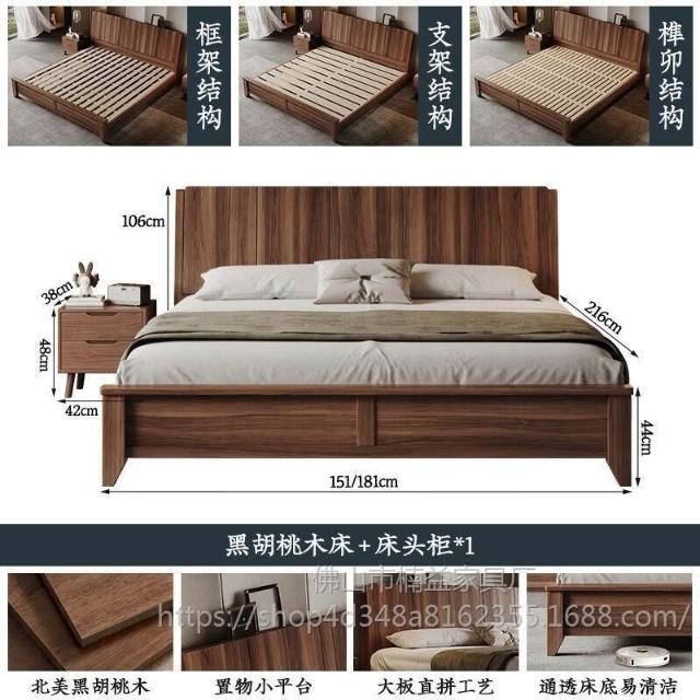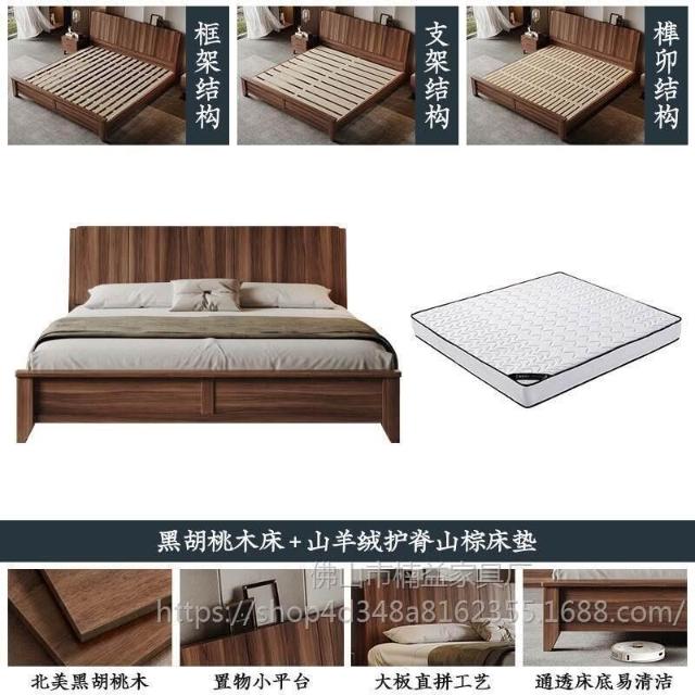 黑胡桃木實木床1.5米1.8米主臥大床中古風家用榫卯工藝大板床