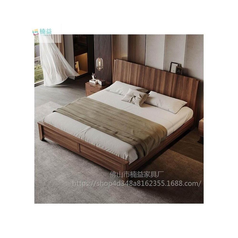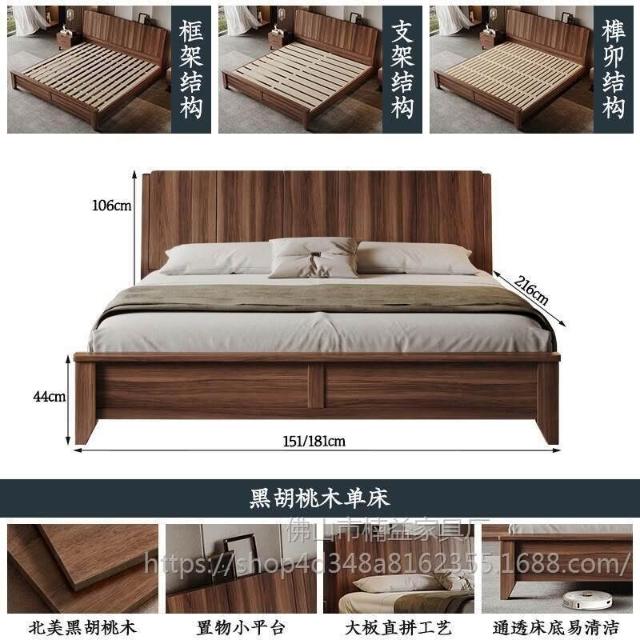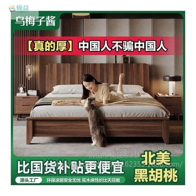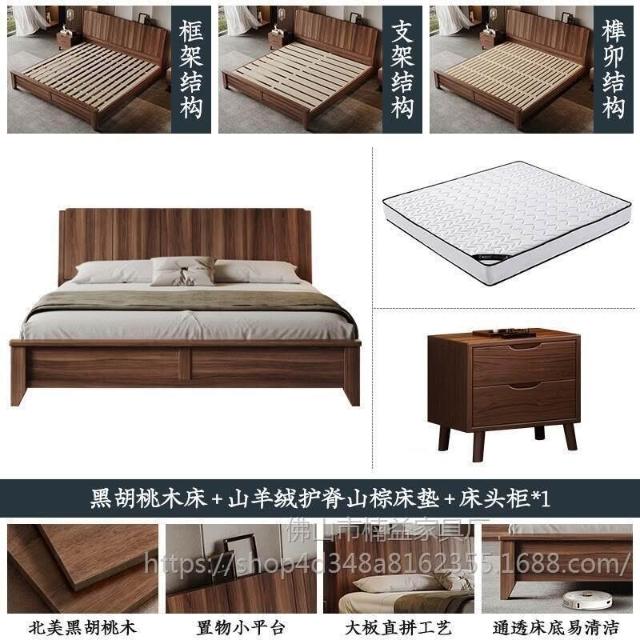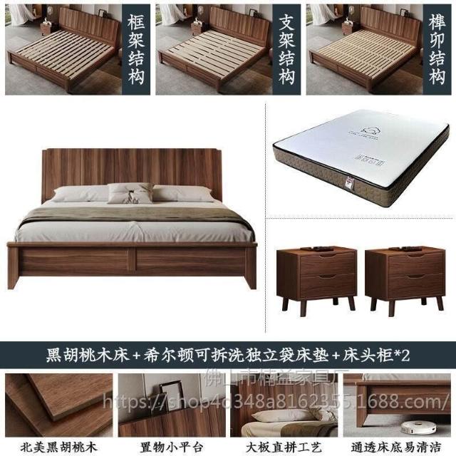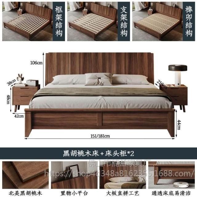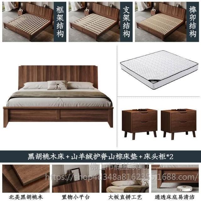 黑胡桃木實木床1.5米1.8米主臥大床中古風家用榫卯工藝大板床