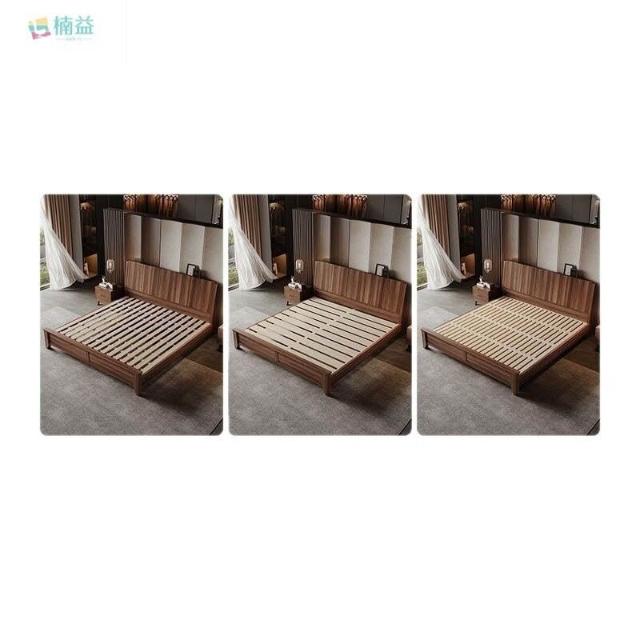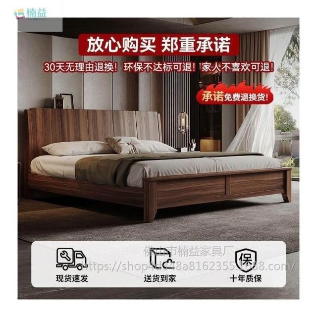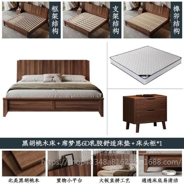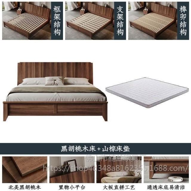 黑胡桃木實木床1.5米1.8米主臥大床中古風家用榫卯工藝大板床