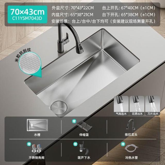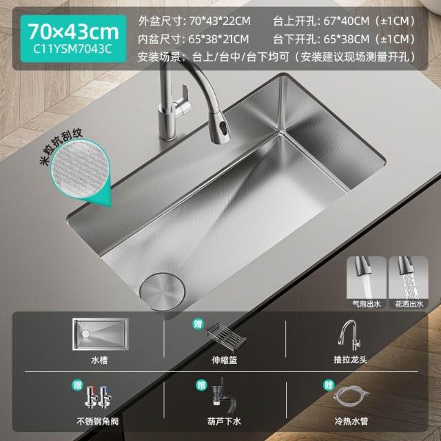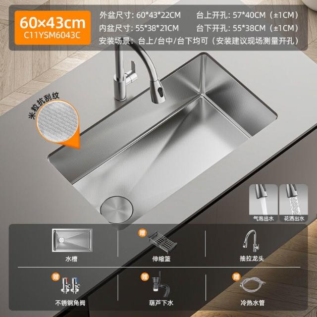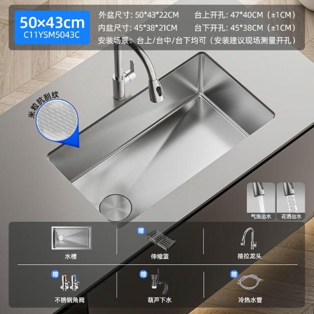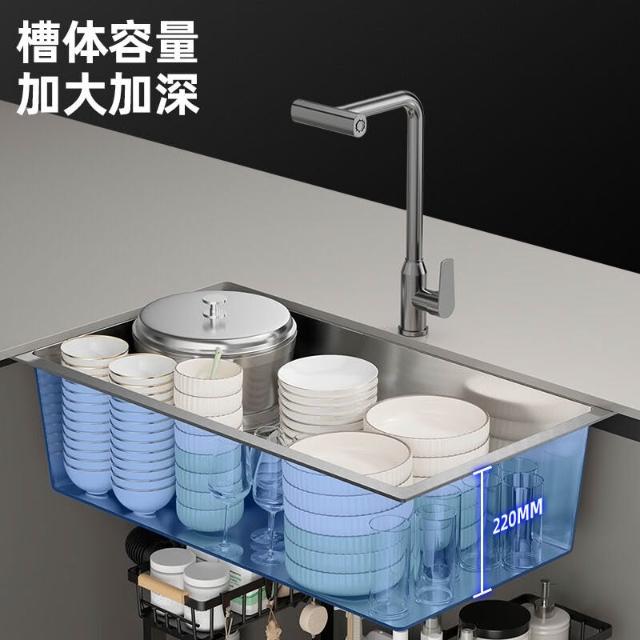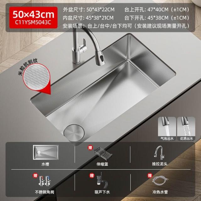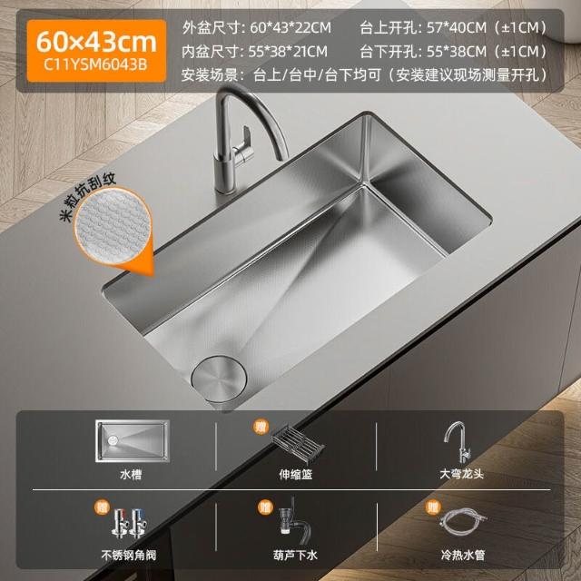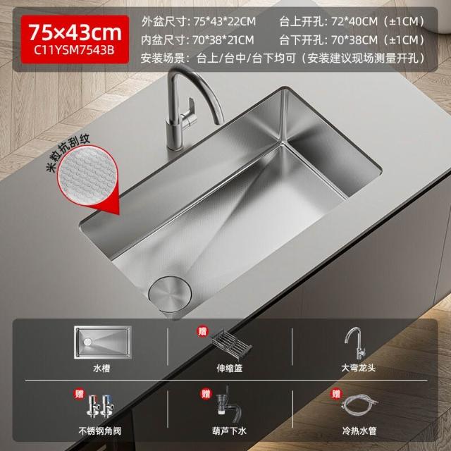 小米粒加厚廚房大單槽洗菜盆水槽不銹鋼洗碗槽池臺上下盆水槽