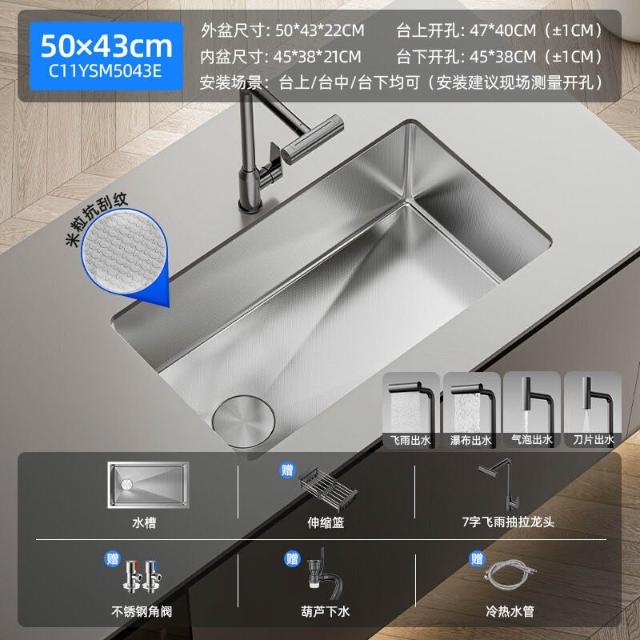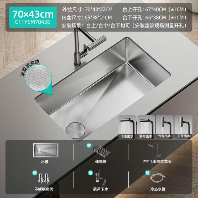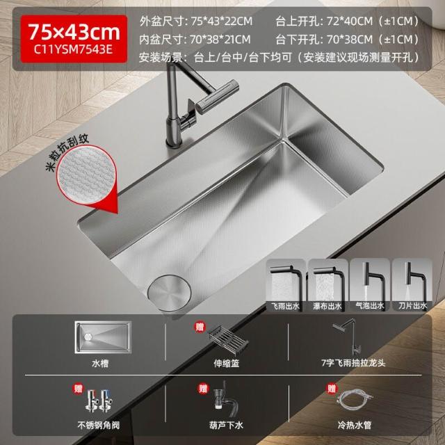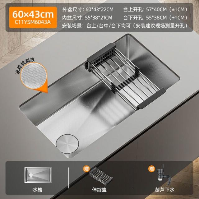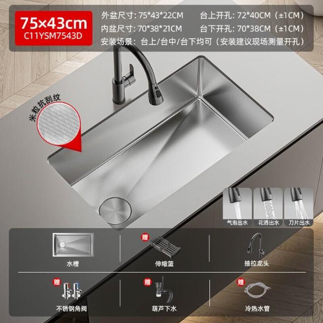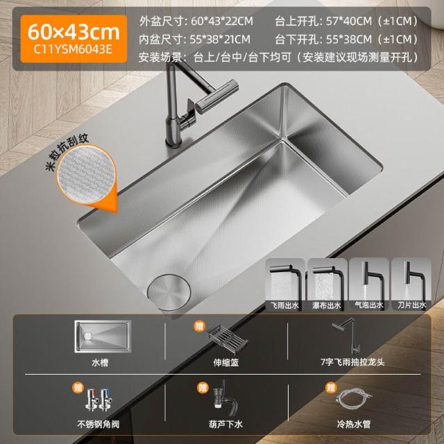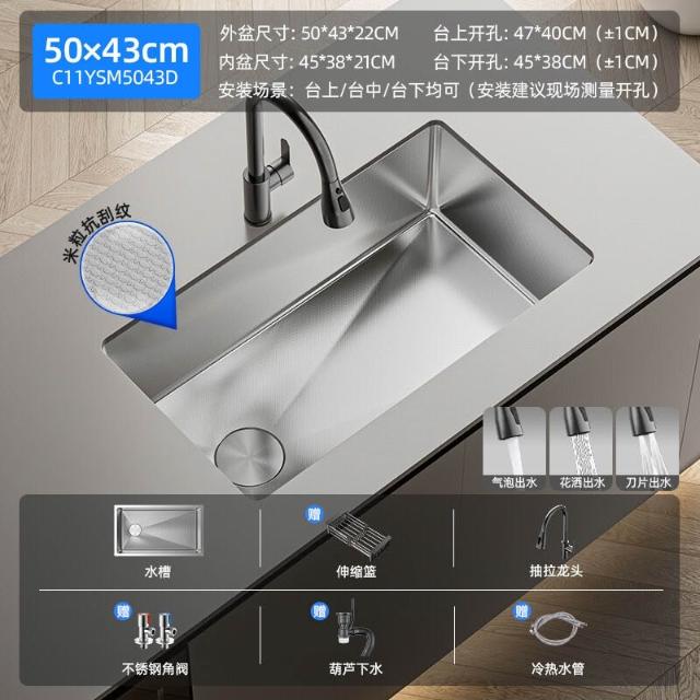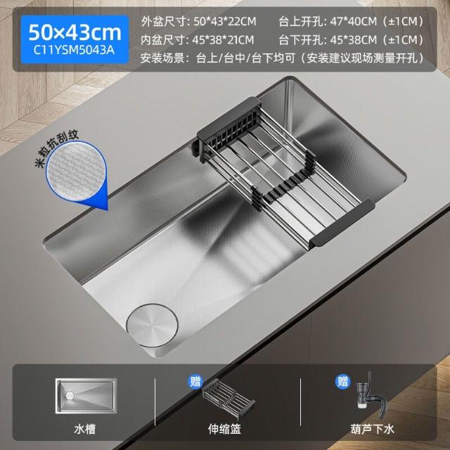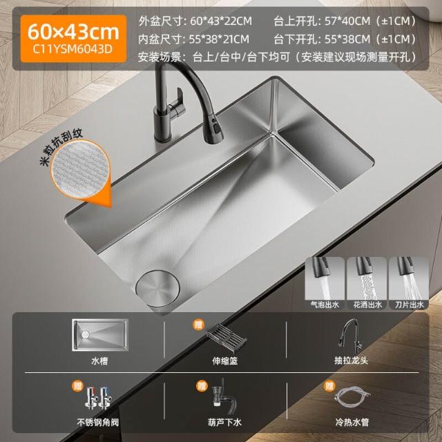 小米粒加厚廚房大單槽洗菜盆水槽不銹鋼洗碗槽池臺上下盆水槽