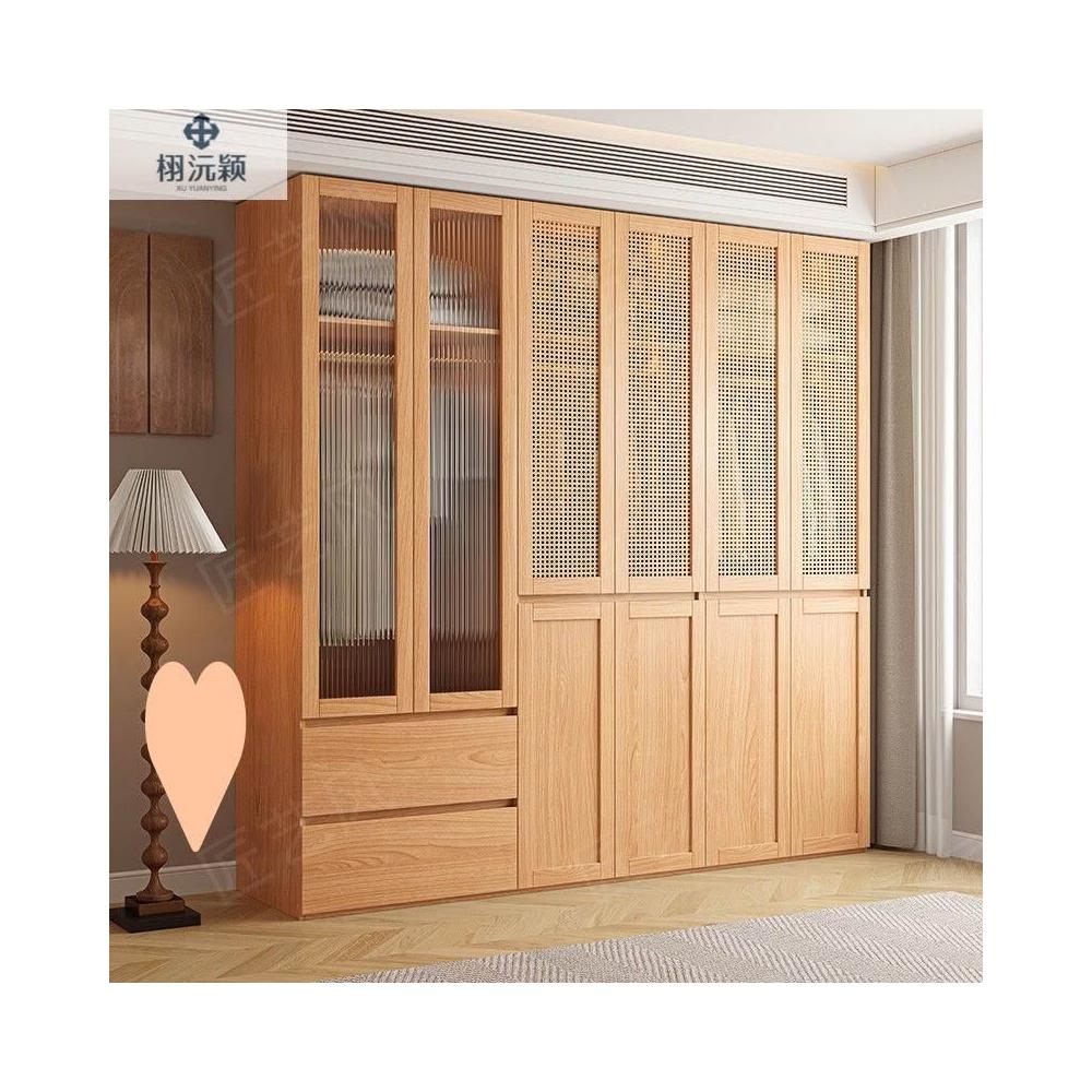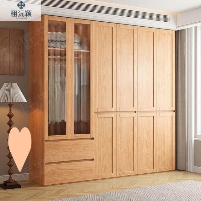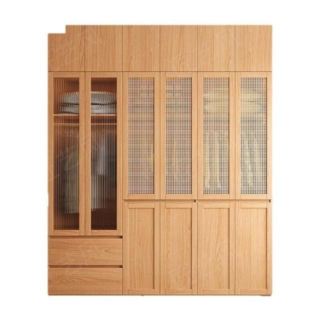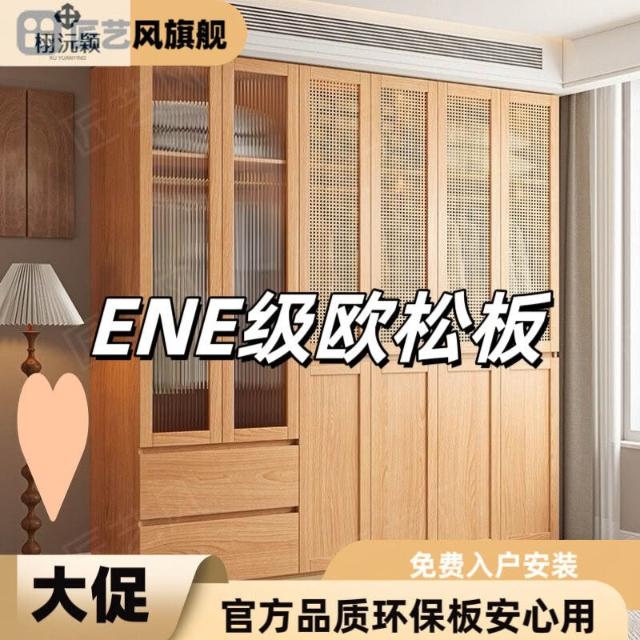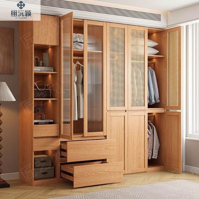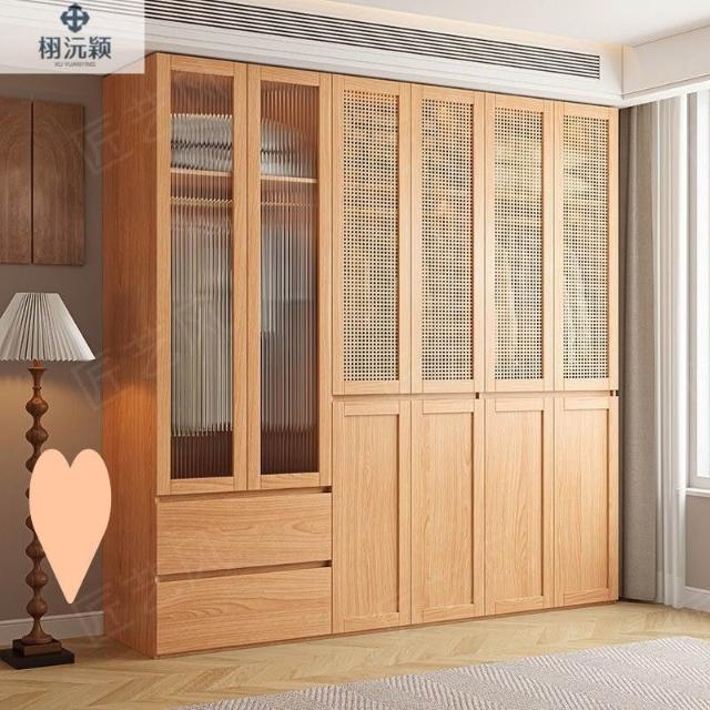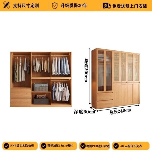 ENF級實木歐松板衣櫃規格藤編門免拉手家用主臥免拉手簡約大櫥櫃