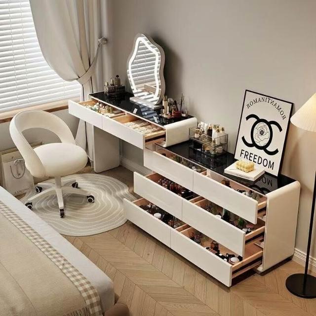 新款超薄極窄30cm梳妝臺一體鬥櫃臥室床尾櫃超窄化妝臺奶油風