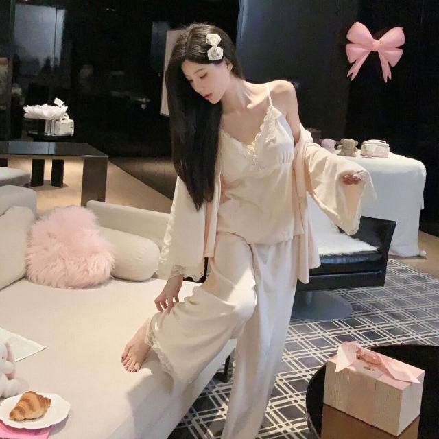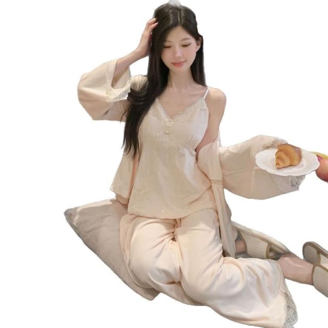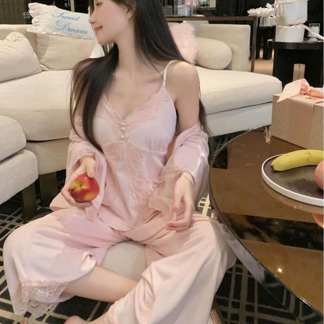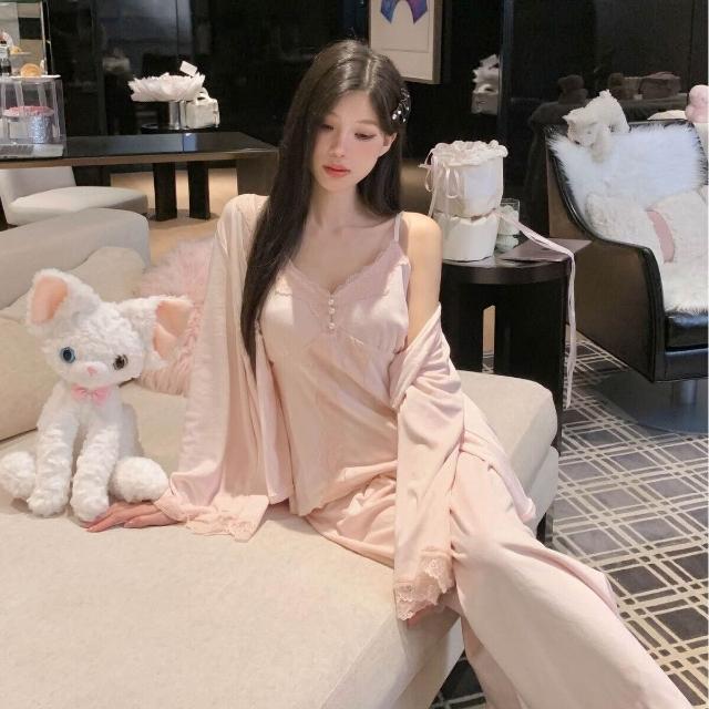 海島絨新款秋冬雙面絨保暖性感誘惑長袖女睡衣三件套純欲家居服