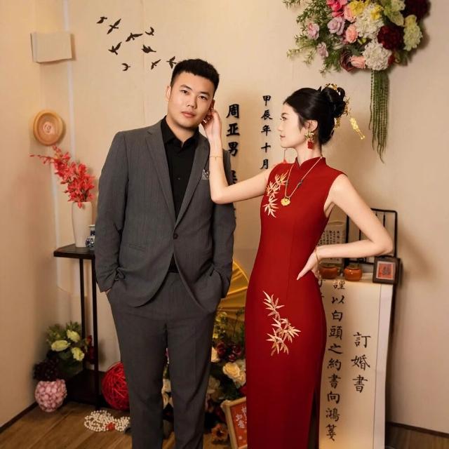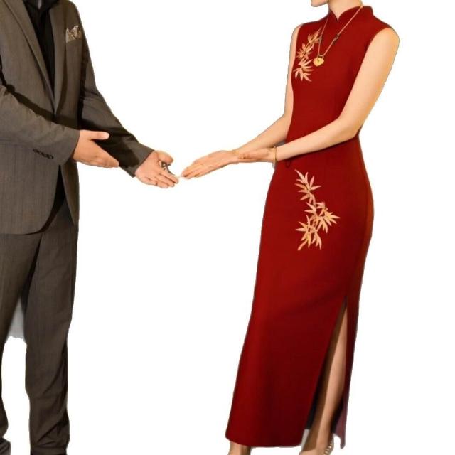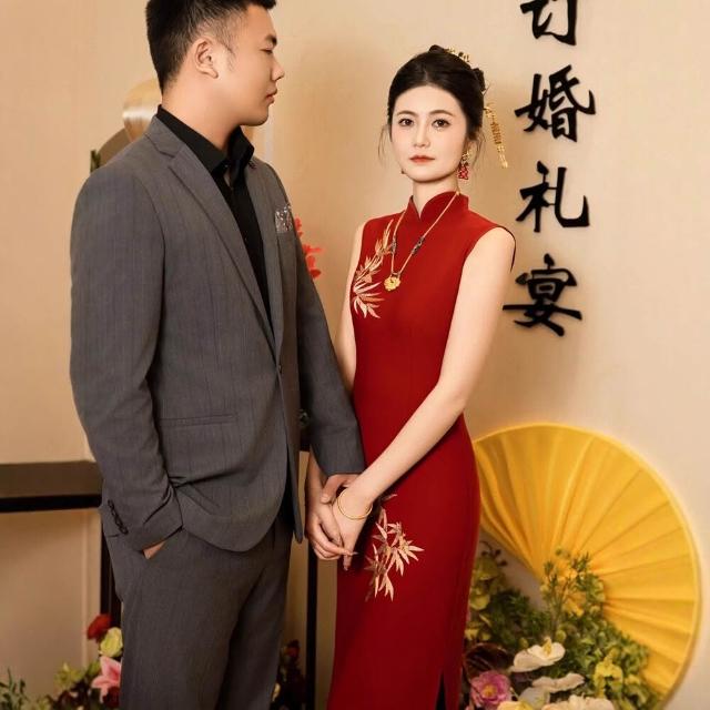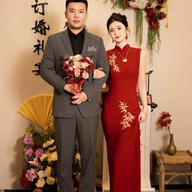 禮服裙女新娘婚禮酒紅色敬酒服訂婚旗袍結婚回門服晚宴長裙禮服女