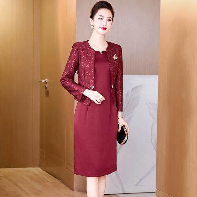 秋季洋氣連衣裙婚宴媽媽裝中老年時尚結婚禮服高貴輕奢兩件套套裝
