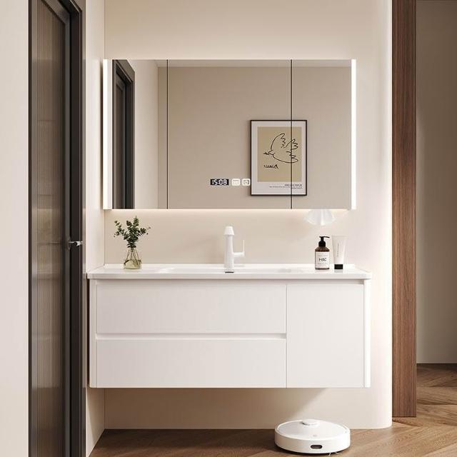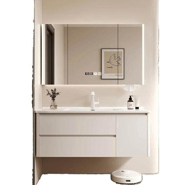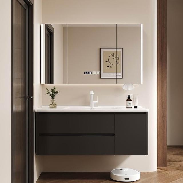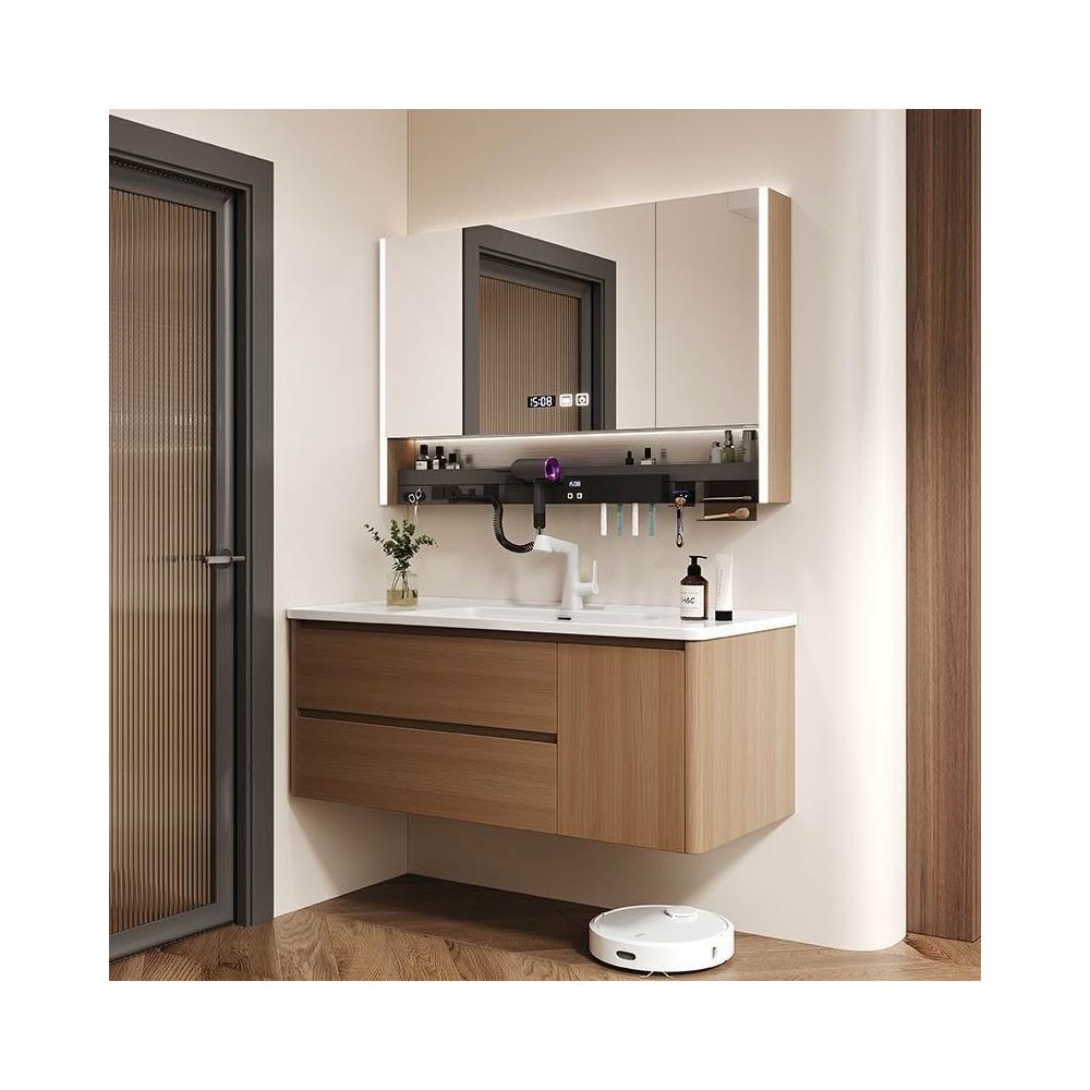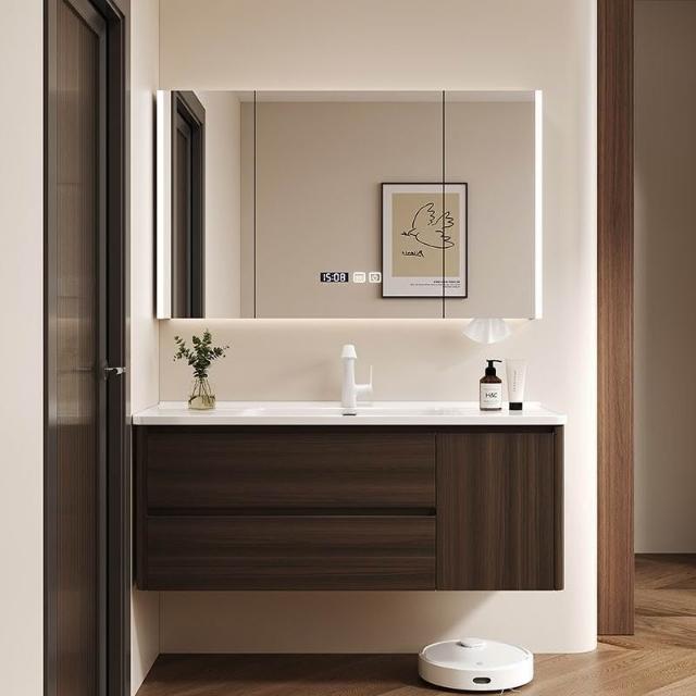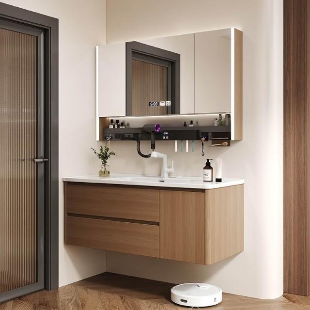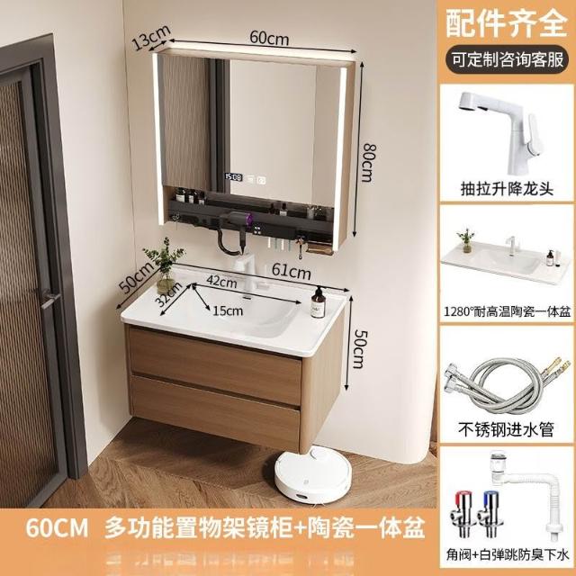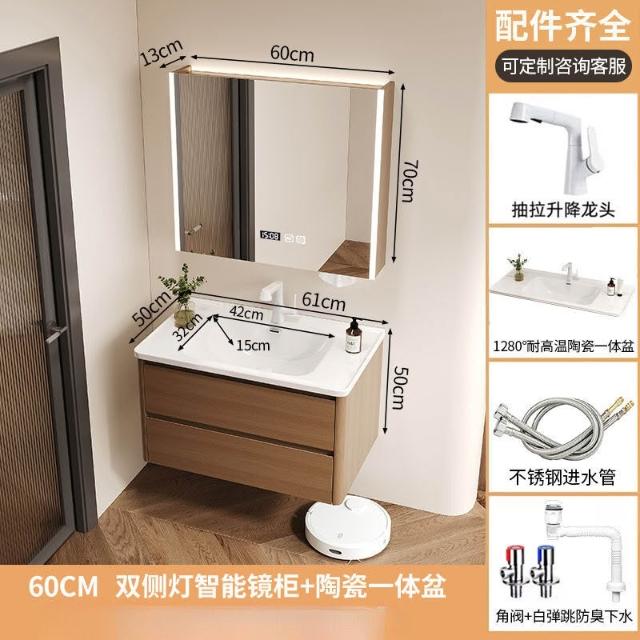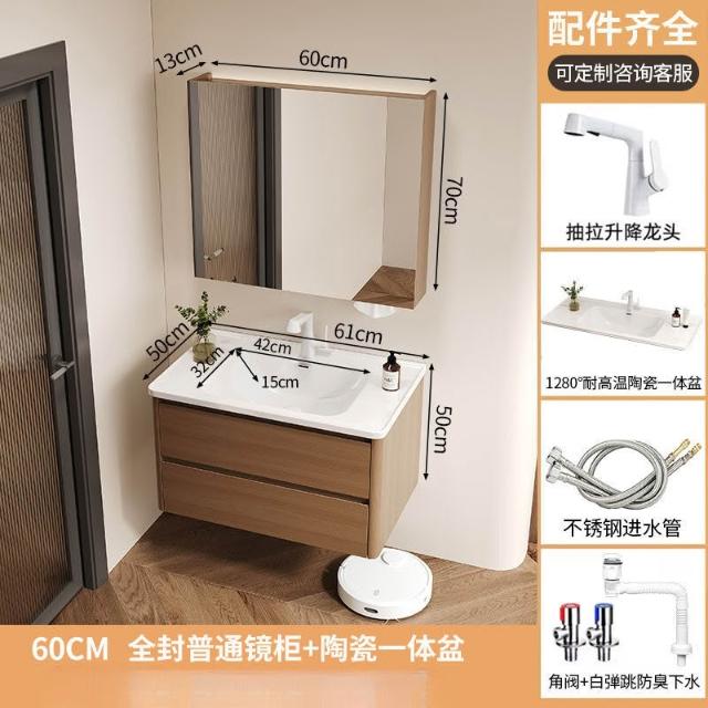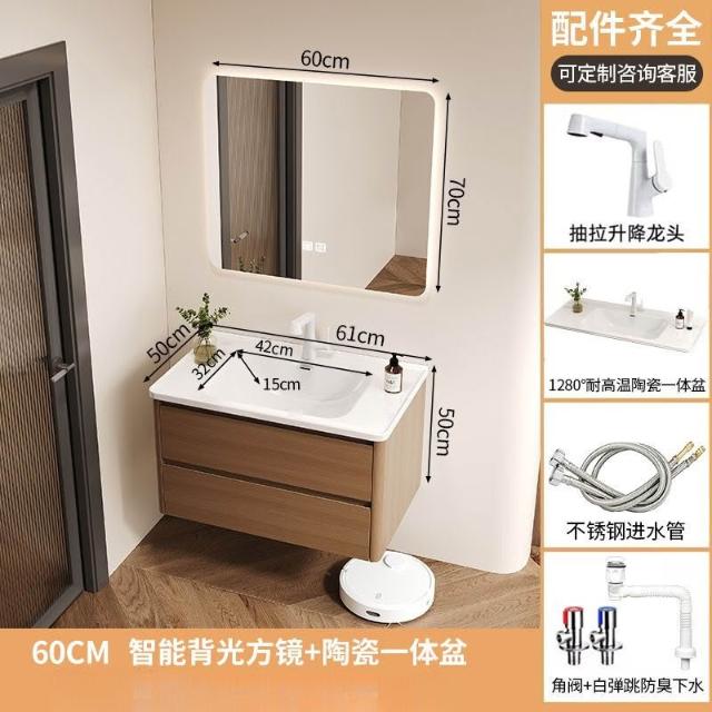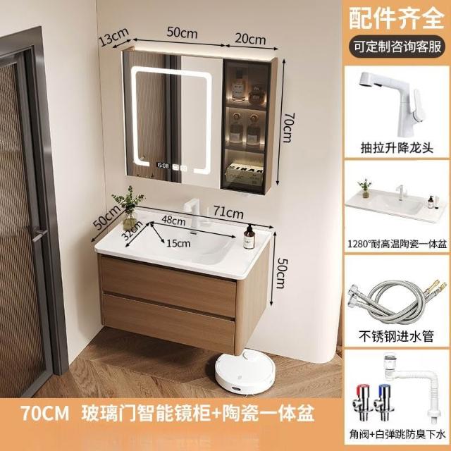 烤漆不銹鋼浴室櫃陶瓷一體盆洗漱臺衛生間洗手盆櫃組合木紋色