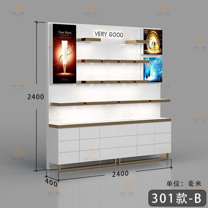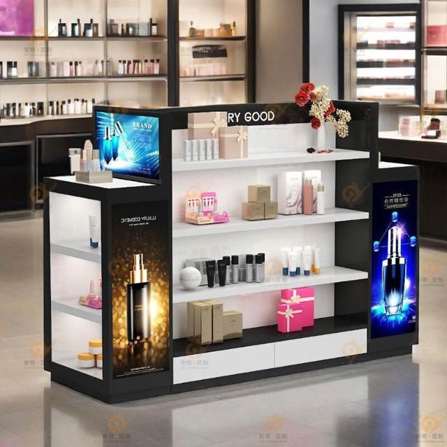 商場化妝品展示櫃美容院展櫃帶燈美妝產品陳列櫃中島櫃展示臺帶鎖 941