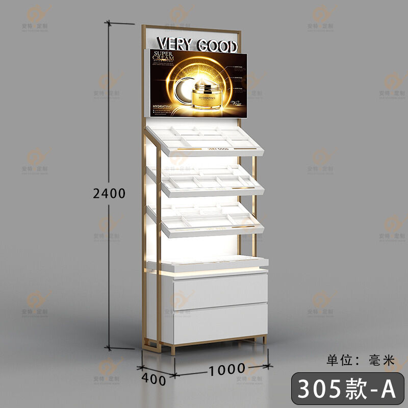 商場化妝品展示櫃美容院展櫃帶燈美妝產品陳列櫃中島櫃展示臺帶鎖 941