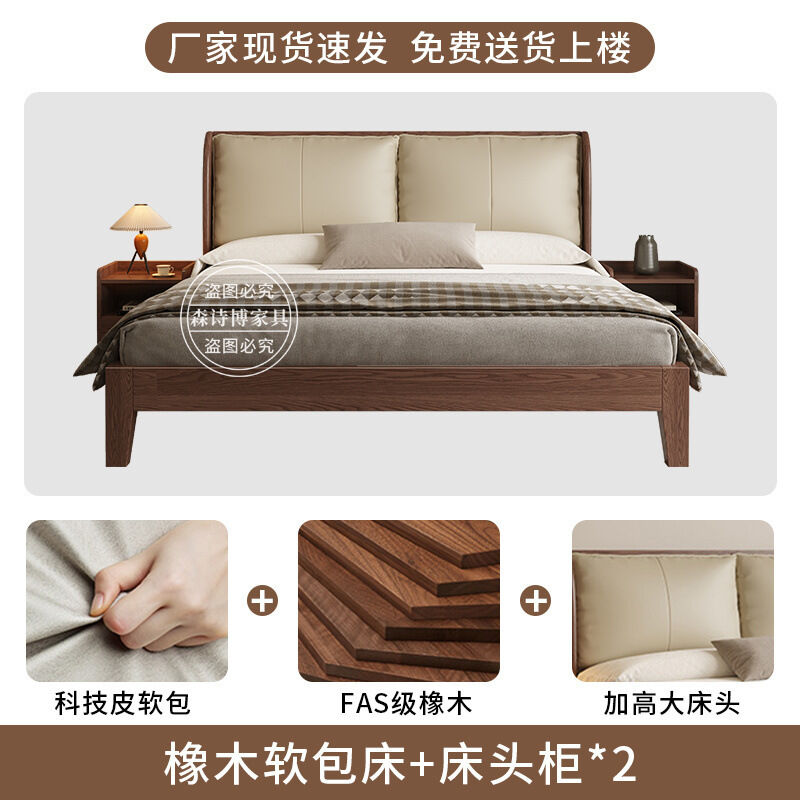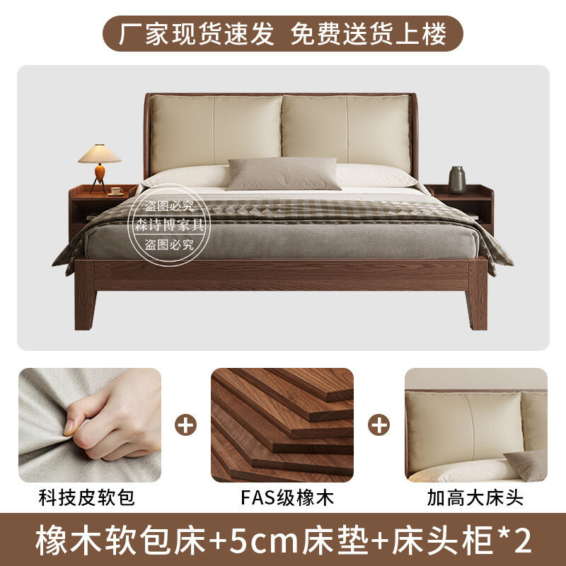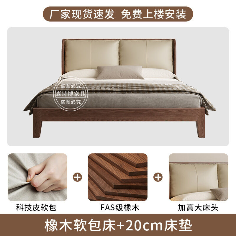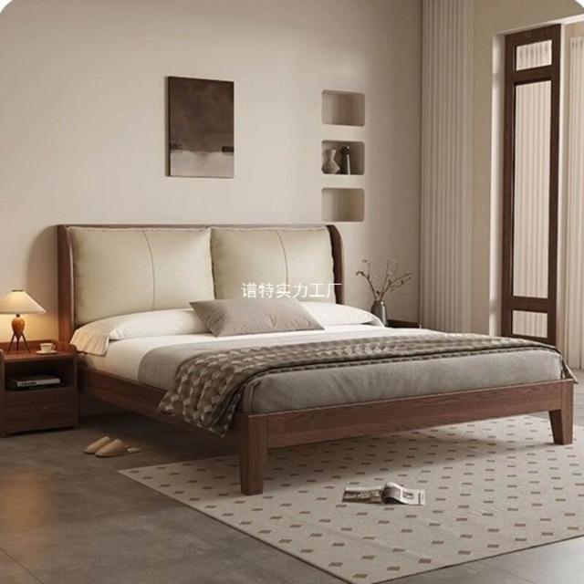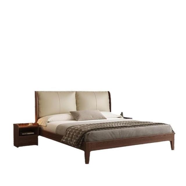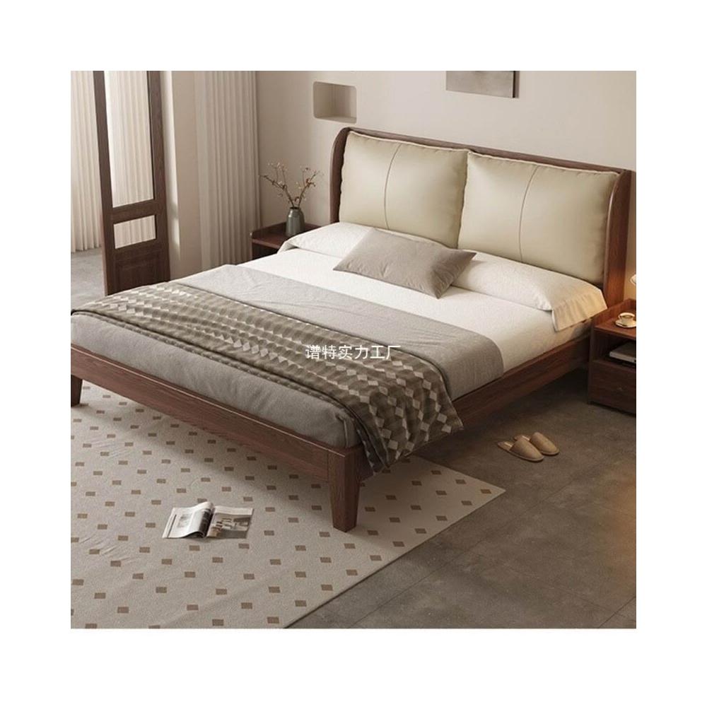 經濟型胡桃色1.2m單人床架耐用橡木床簡約現代1.8米雙人主臥1.5米 1ec