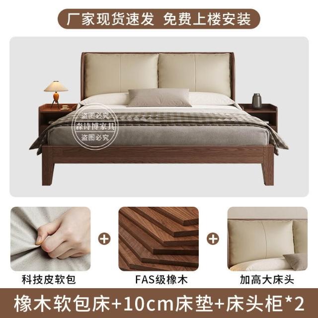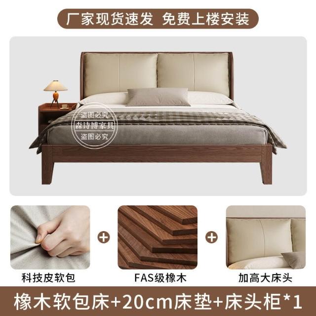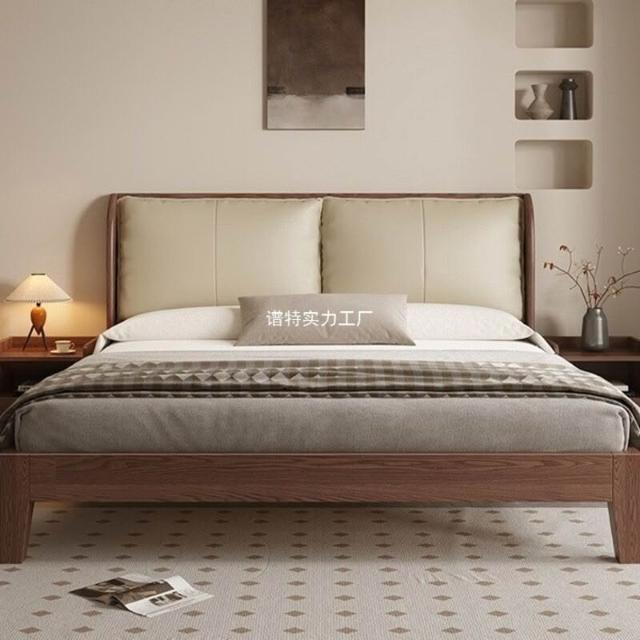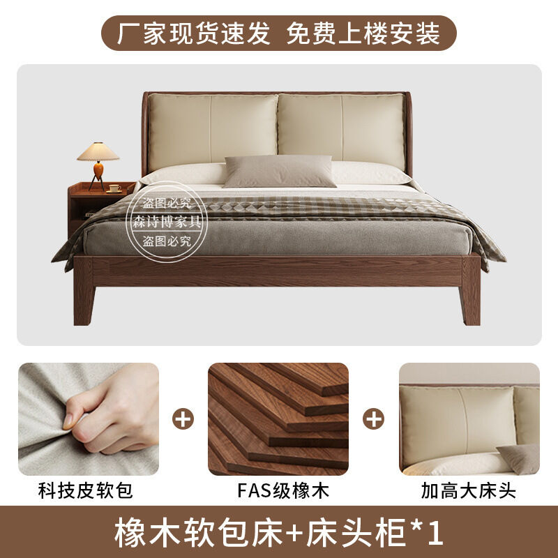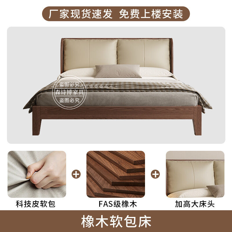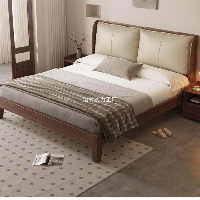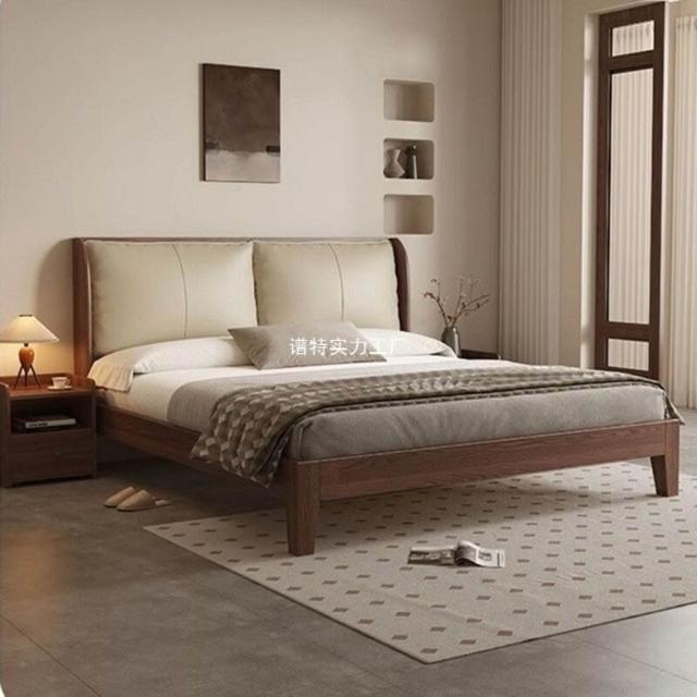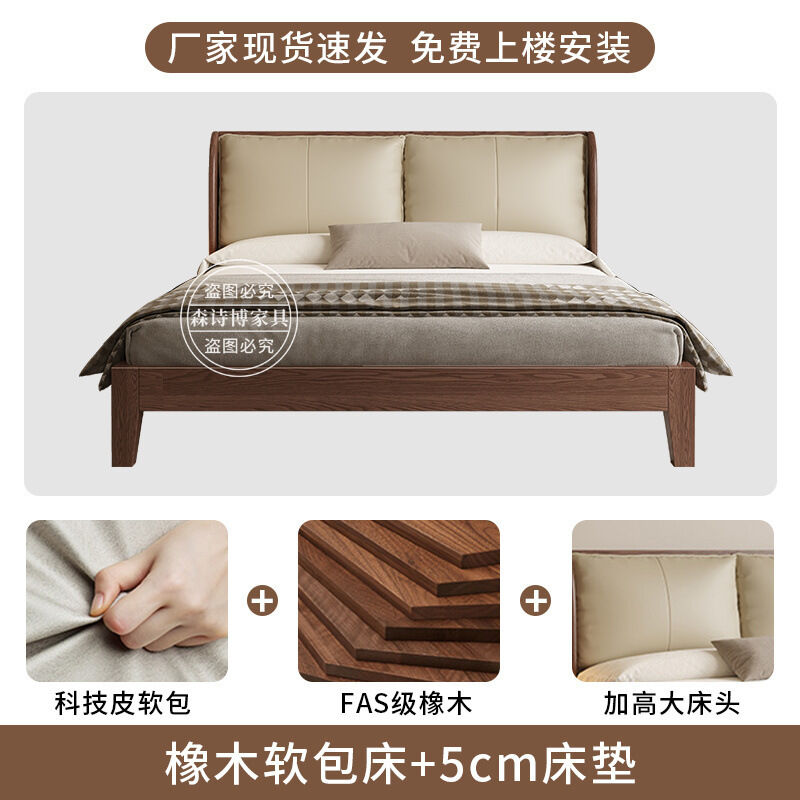 經濟型胡桃色1.2m單人床架耐用橡木床簡約現代1.8米雙人主臥1.5米 1ec