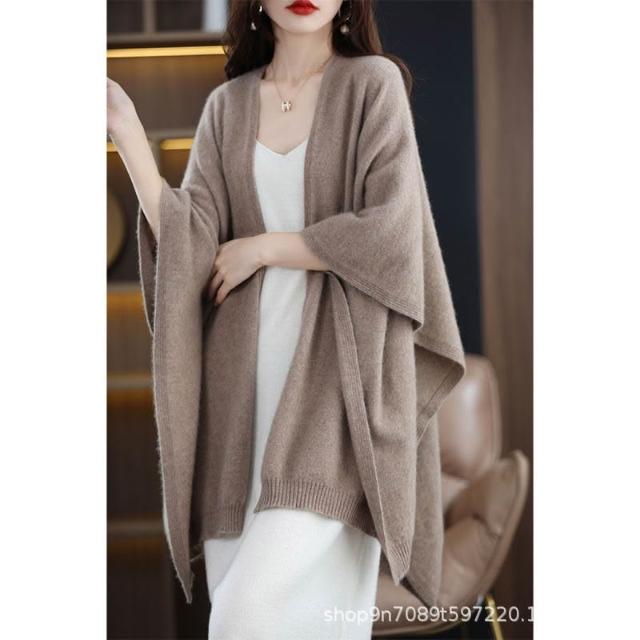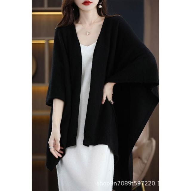 好夢想精品館 美麗諾純羊毛鬥篷超大披肩羊絨圍巾加厚保暖2024秋冬季百搭女黑色