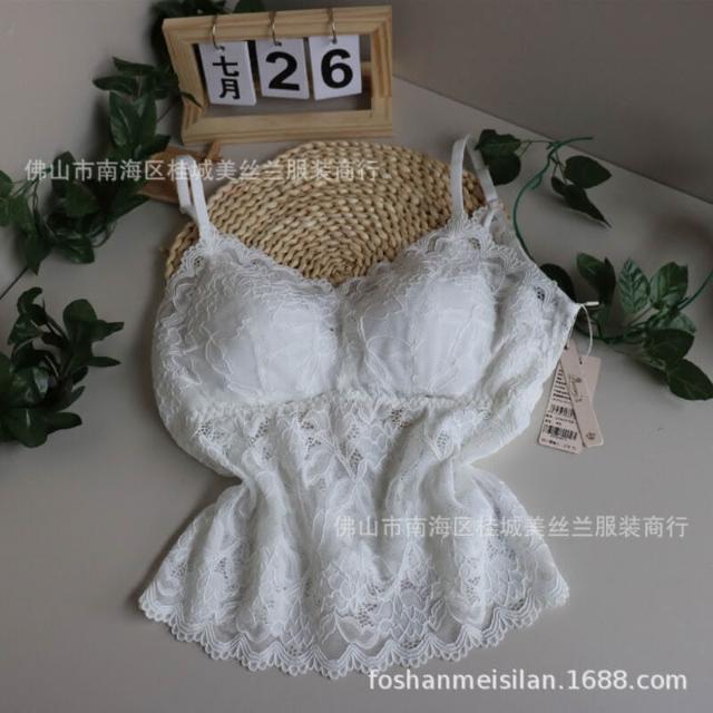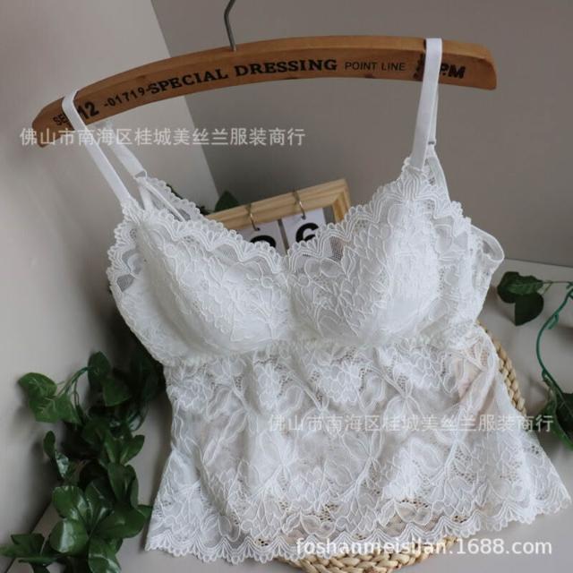 好夢想精品館 高端全蕾絲美背深V一體胸墊免穿內衣背心吊帶D24029