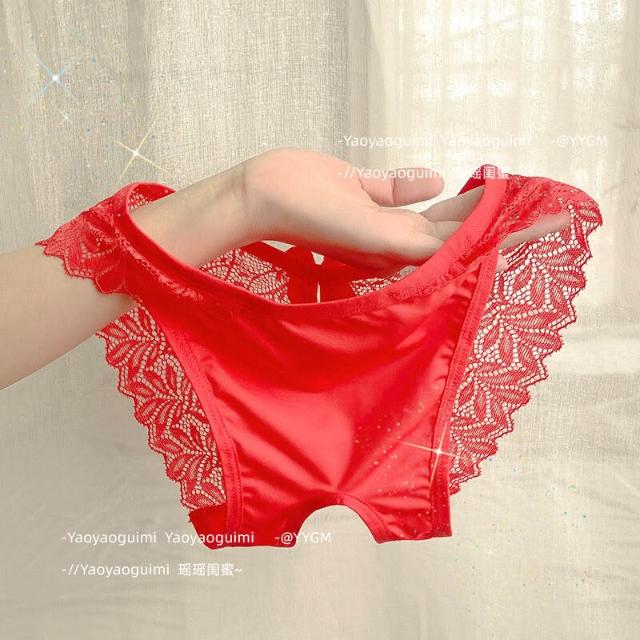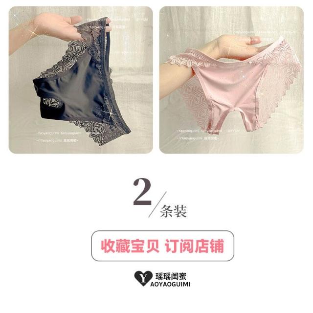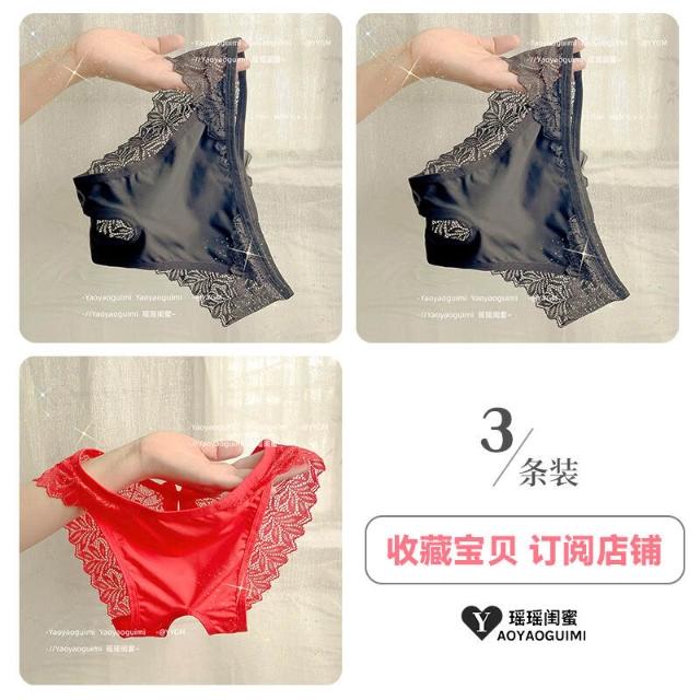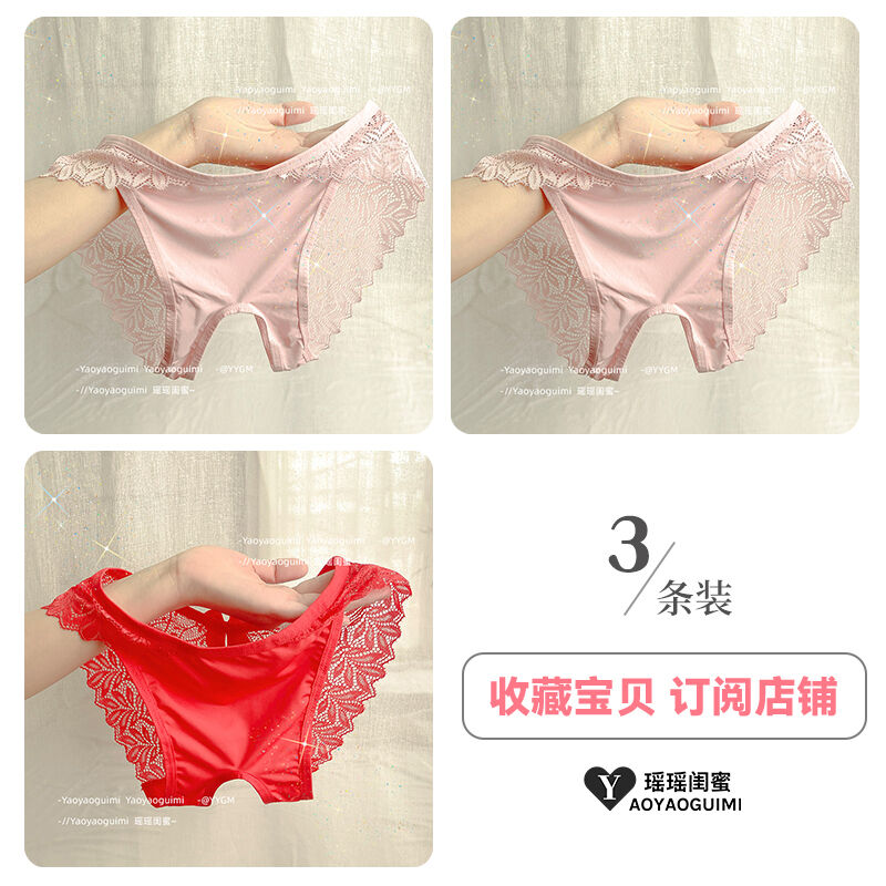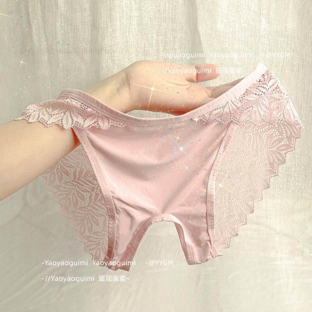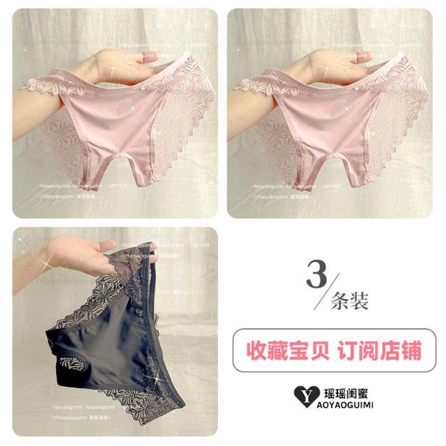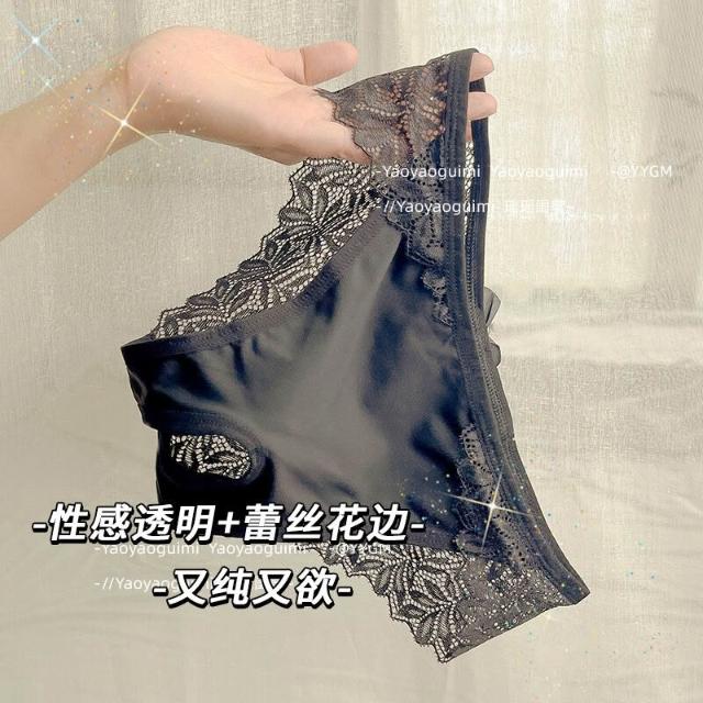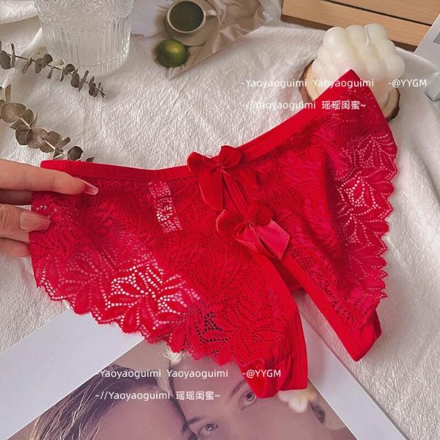 好夢想精品館 瑤瑤閨蜜純欲性感透明镂空蕾絲開裆內褲女黑色火辣少女情調三角褲