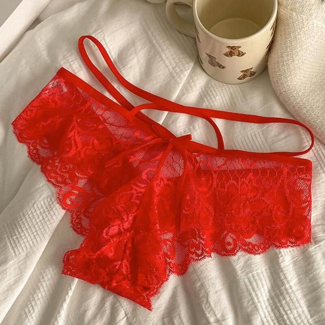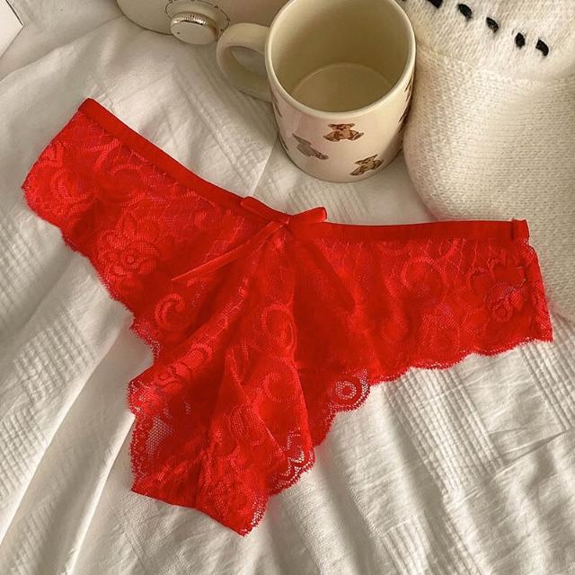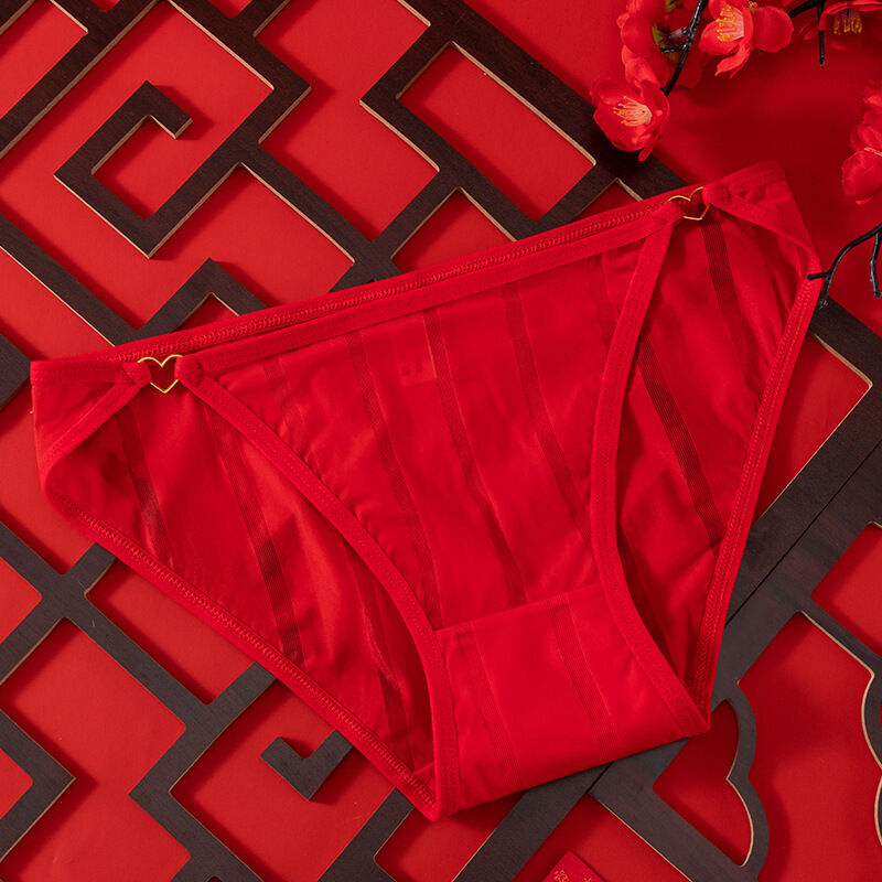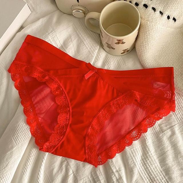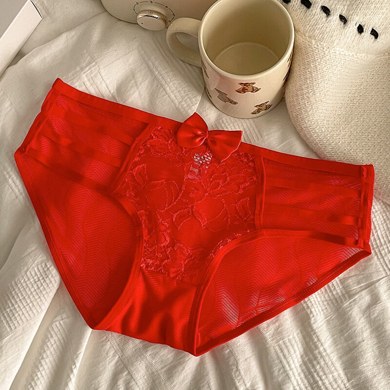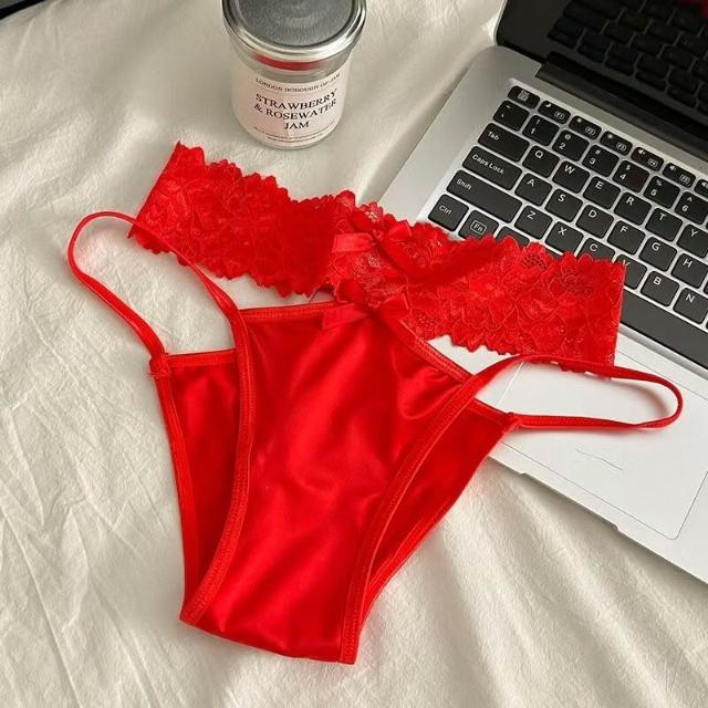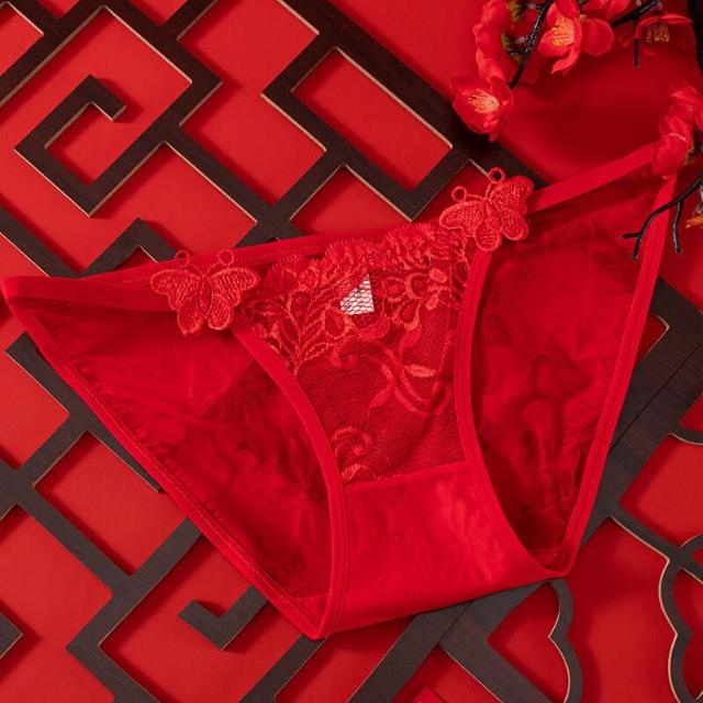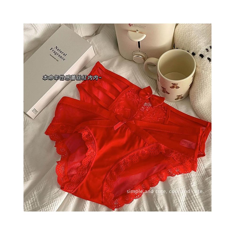 好夢想精品館 本命年紅色內褲女士純棉裆性感蕾絲女生低腰無痕火辣純欲風三角褲