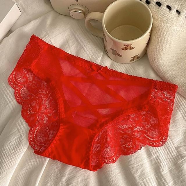 好夢想精品館 本命年紅色內褲女士純棉裆性感蕾絲女生低腰無痕火辣純欲風三角褲