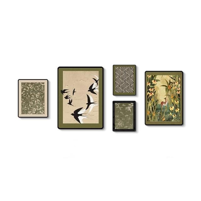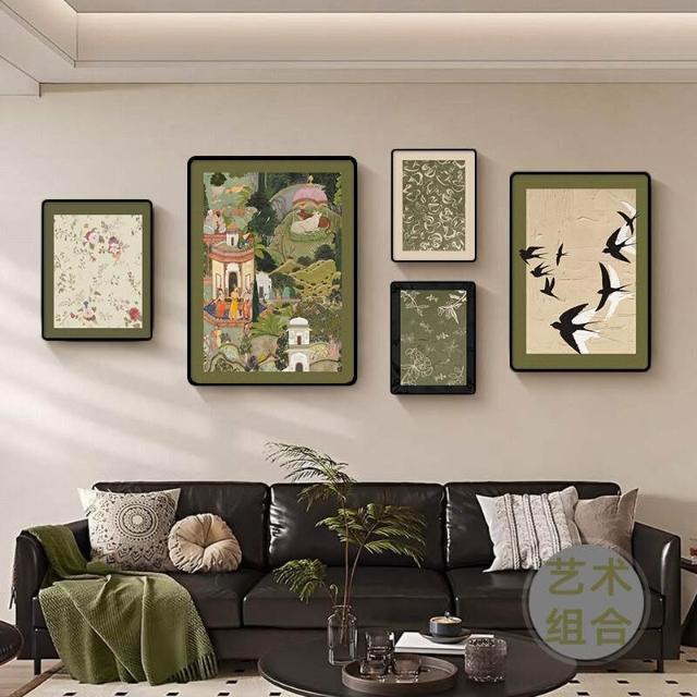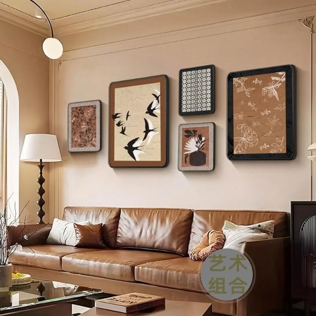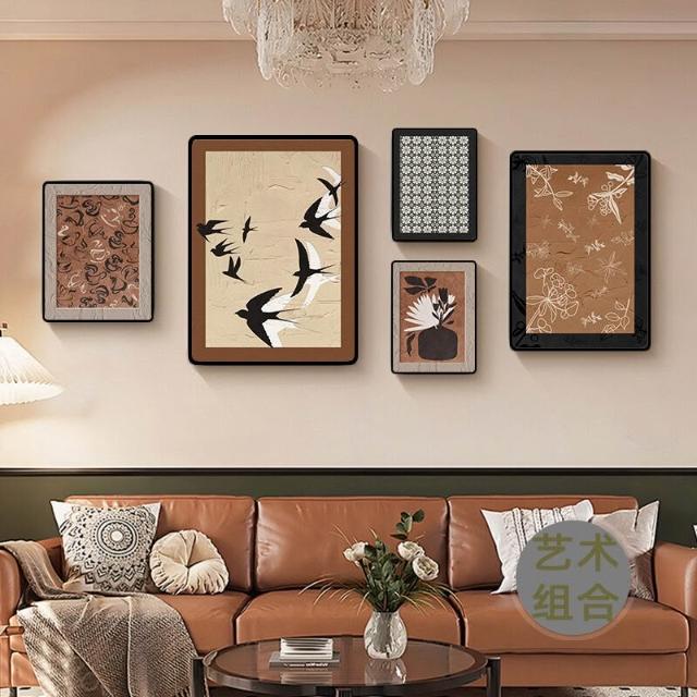 中古風客廳裝飾畫復古法式沙發背景墻壁畫藝術組合高級感晶瓷掛畫