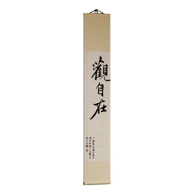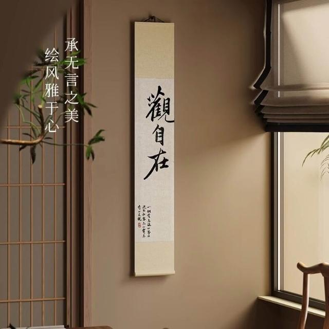新中式觀自在書法卷軸掛畫客廳禅意字畫茶室竹簾書房背景墻裝飾畫
