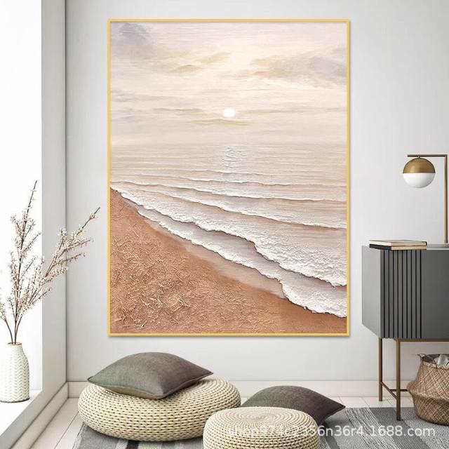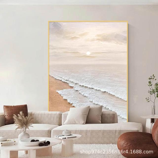 奶油風客廳裝飾畫沙發背景墻落地畫侘寂風肌理畫高級感玄關掛畫