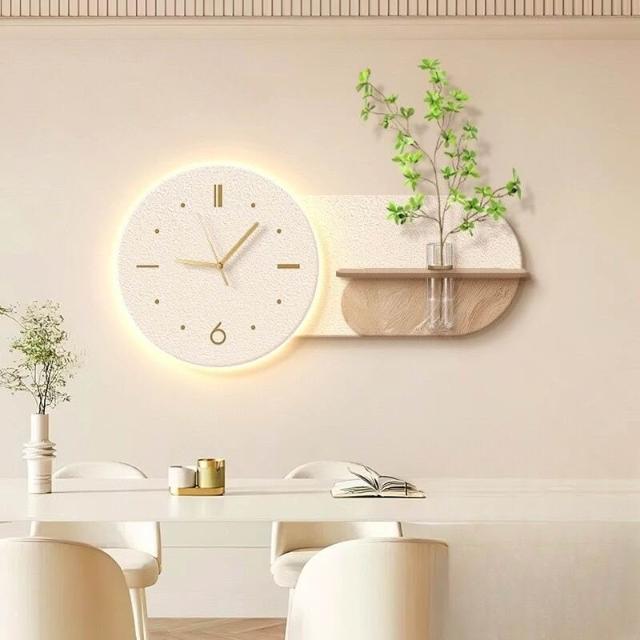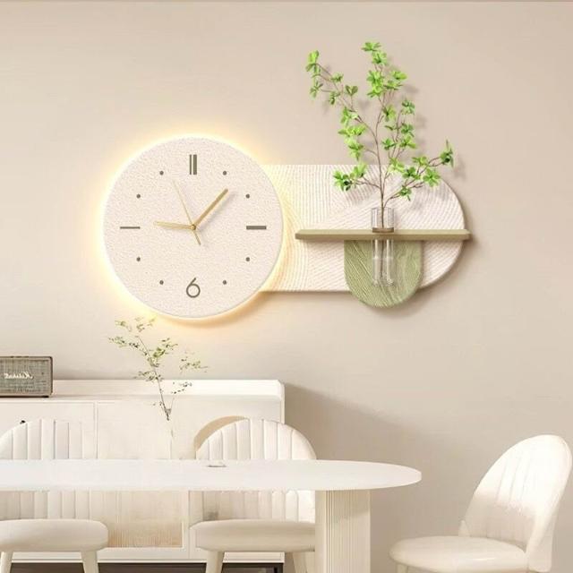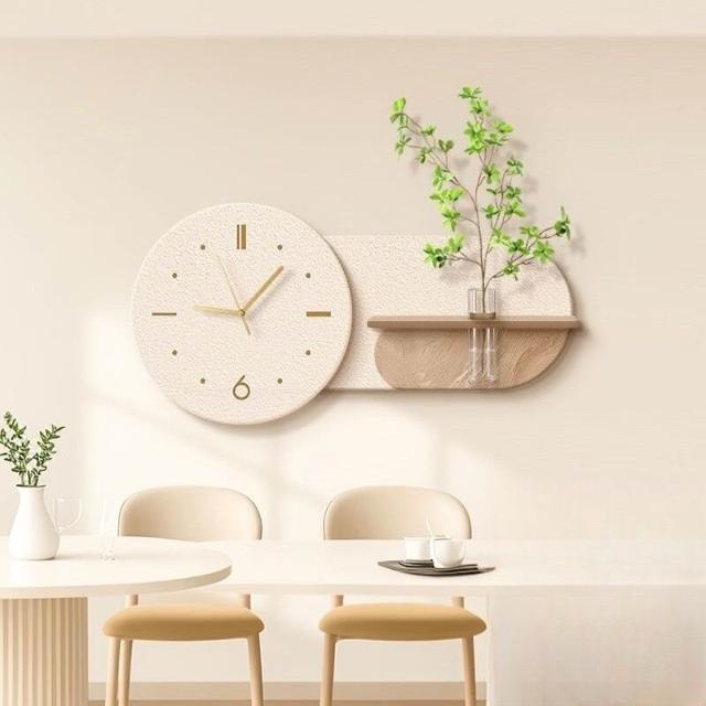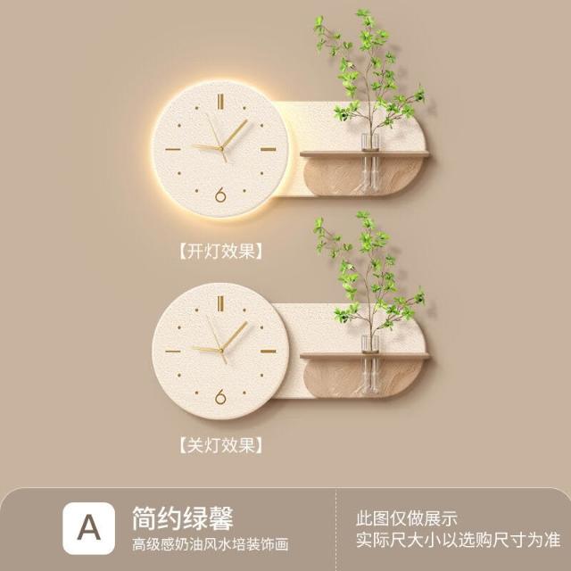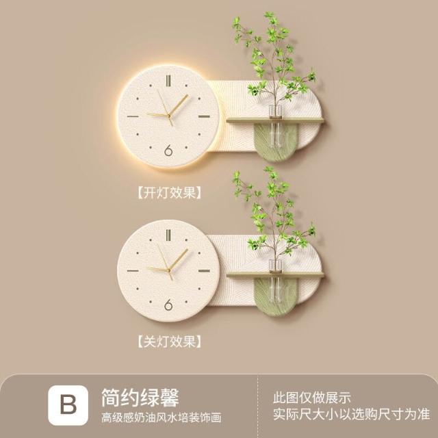 奶油風餐廳裝飾畫鐘表掛鐘客廳2024新款水培綠植掛畫餐桌壁畫時鐘