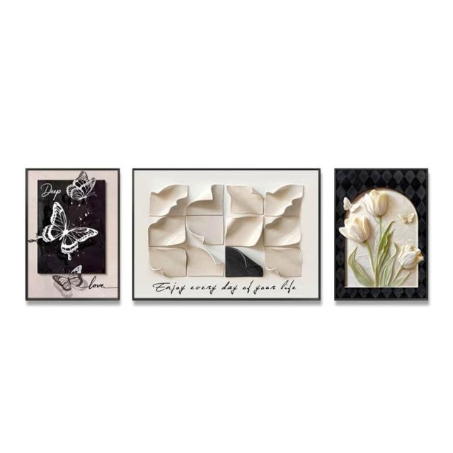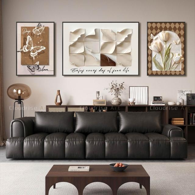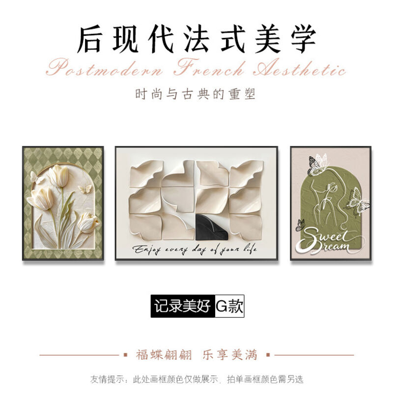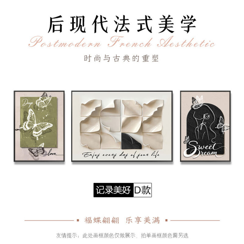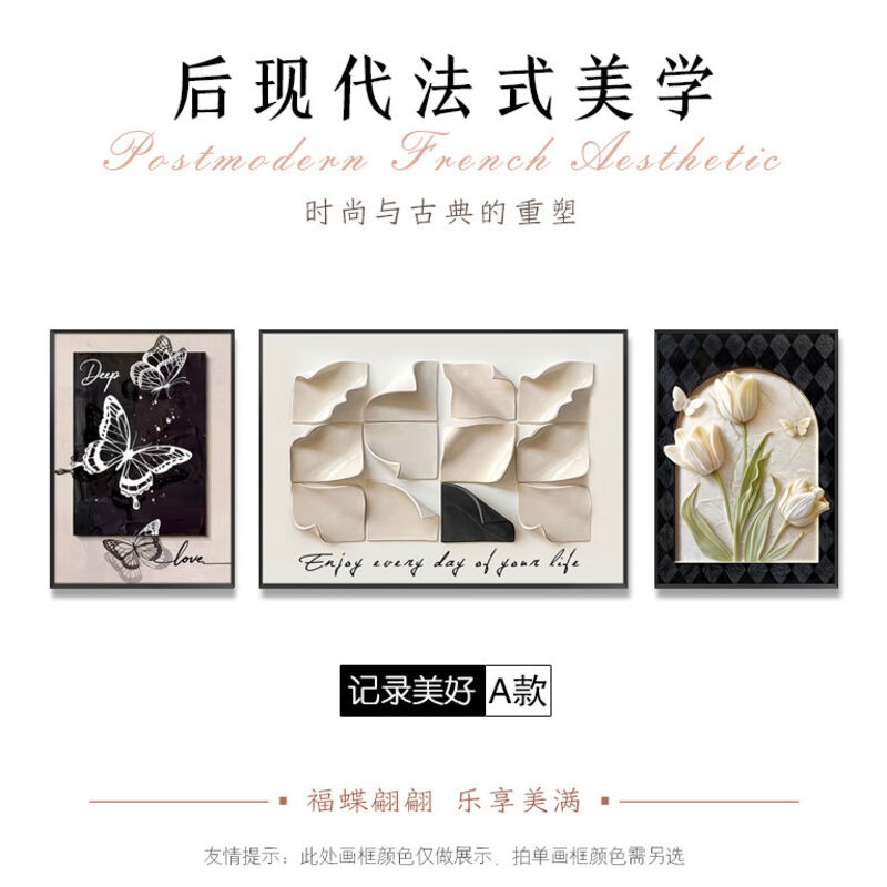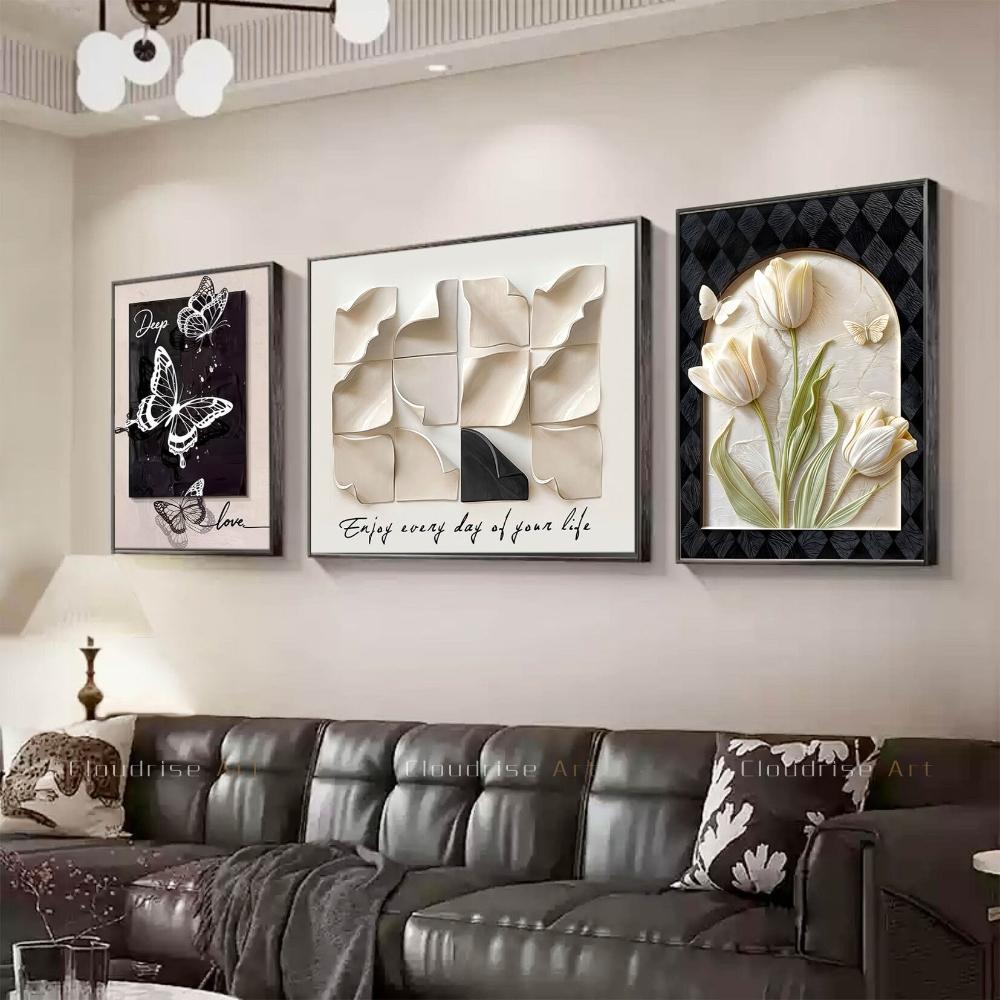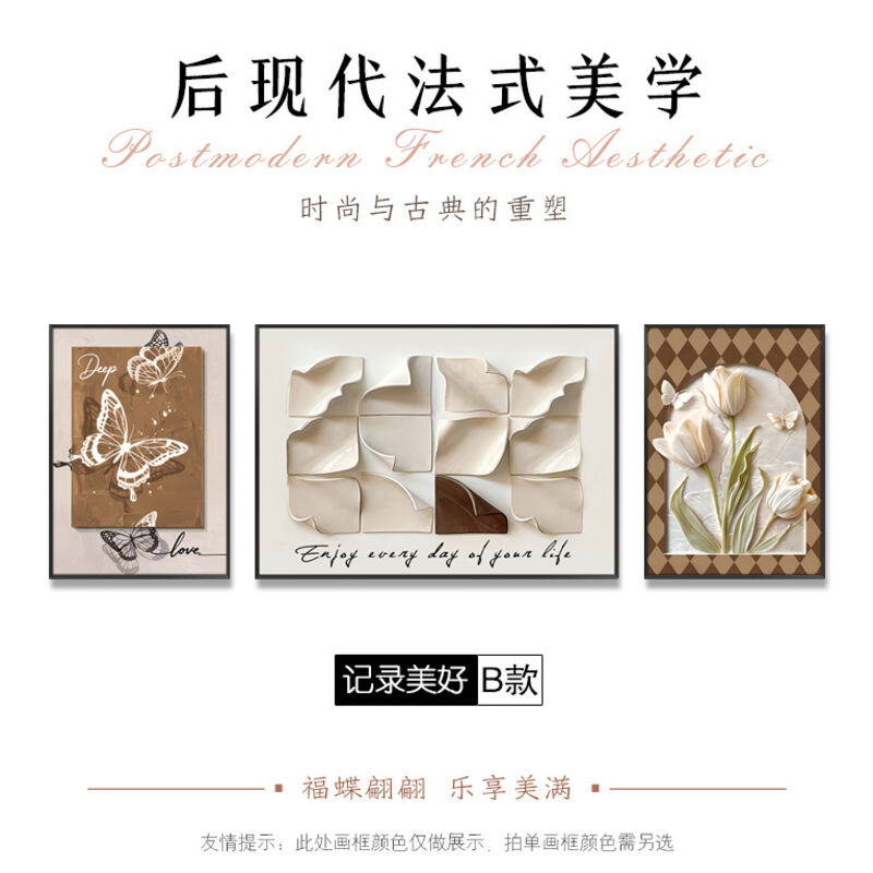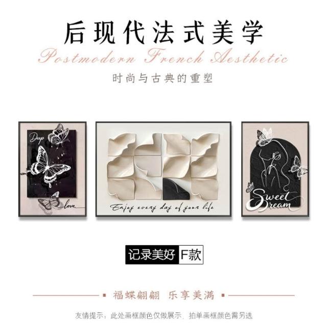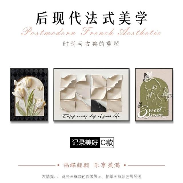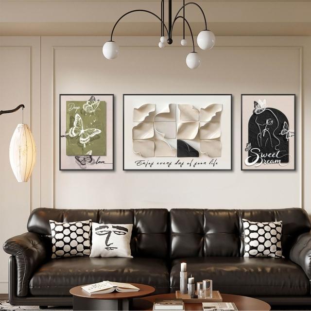 客廳裝飾畫現代簡約高級感抽象沙發背景墻掛畫輕奢法式三聯壁畫