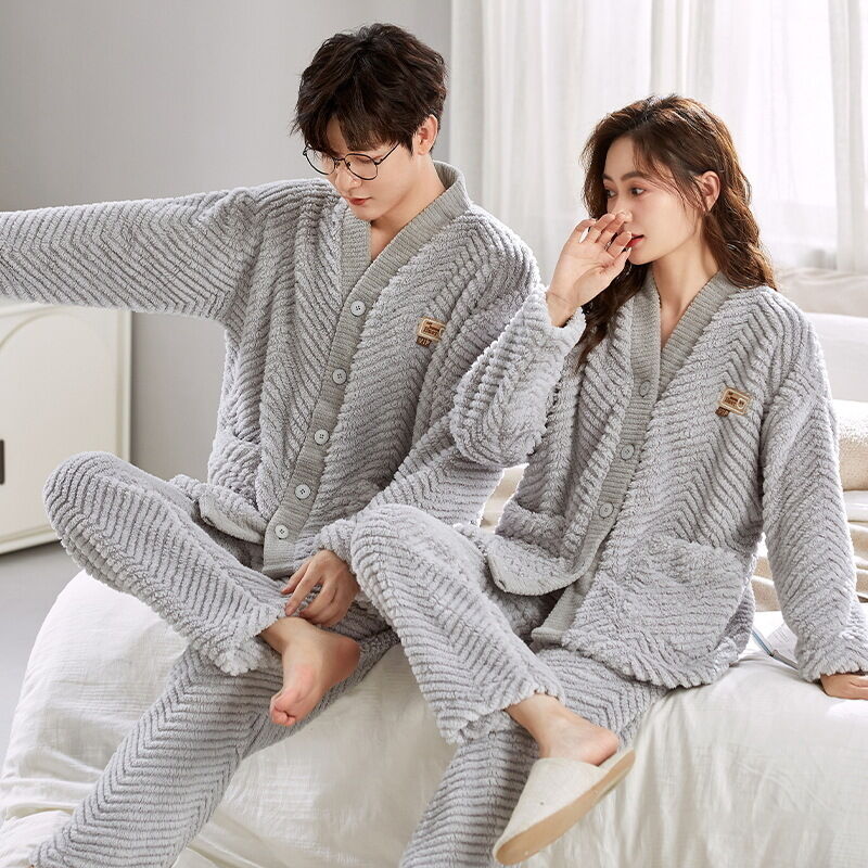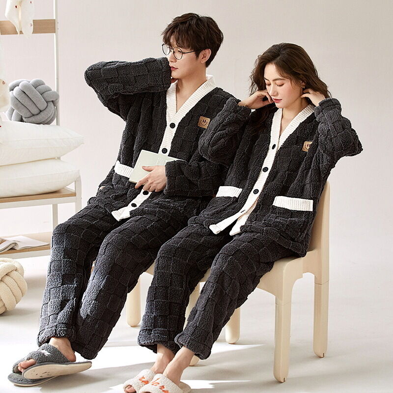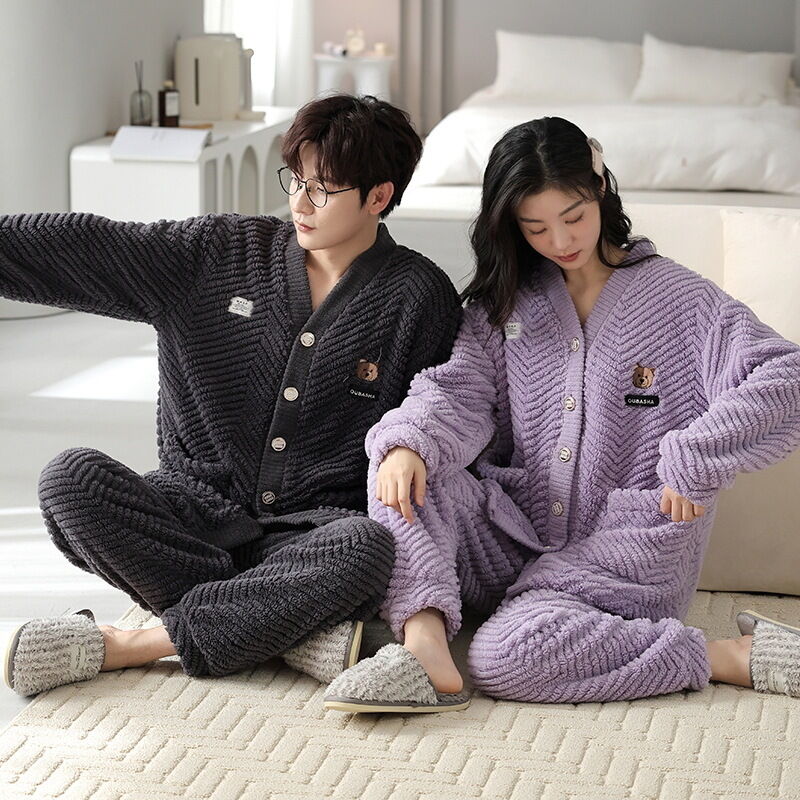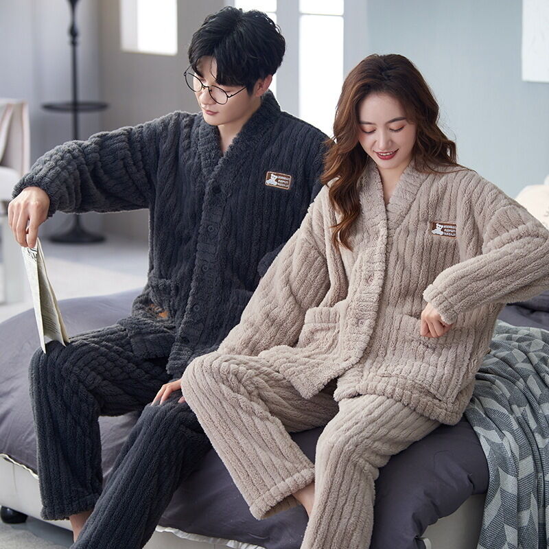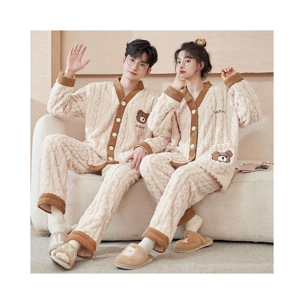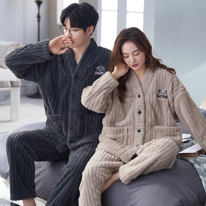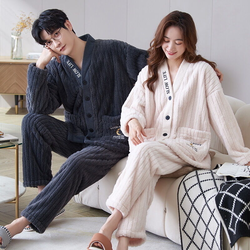 法蘭絨情侶睡衣女冬長袖套裝甜美可愛寬松男士加大碼珊瑚絨家居服