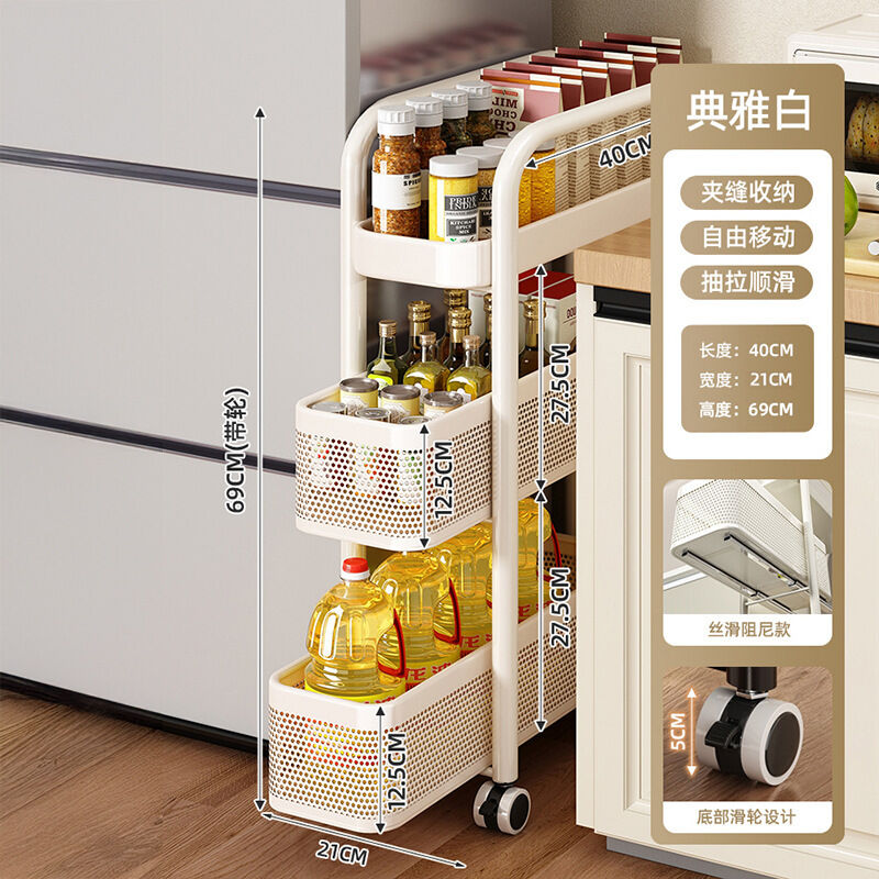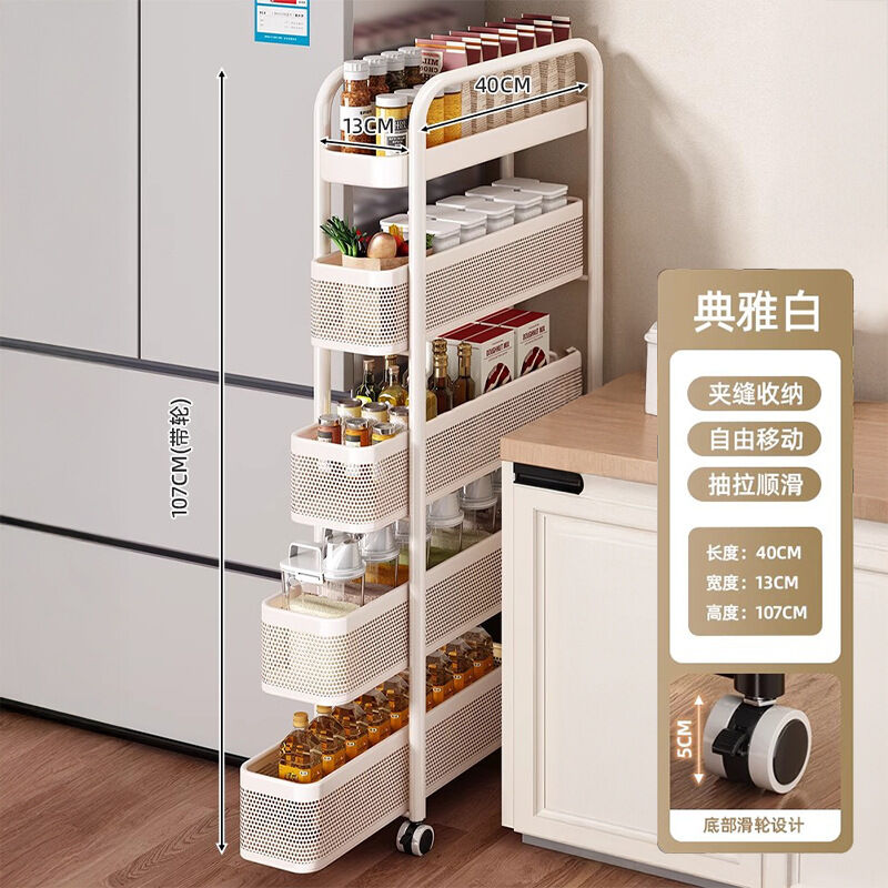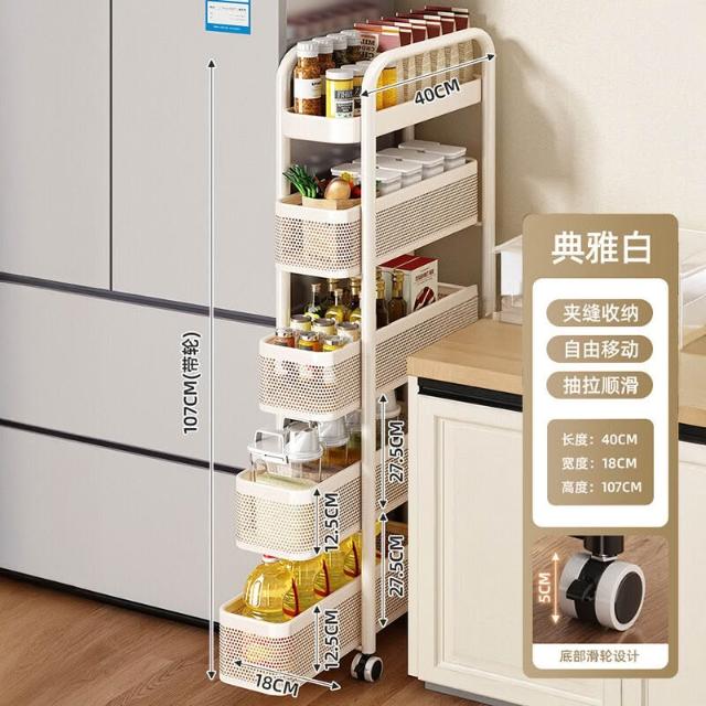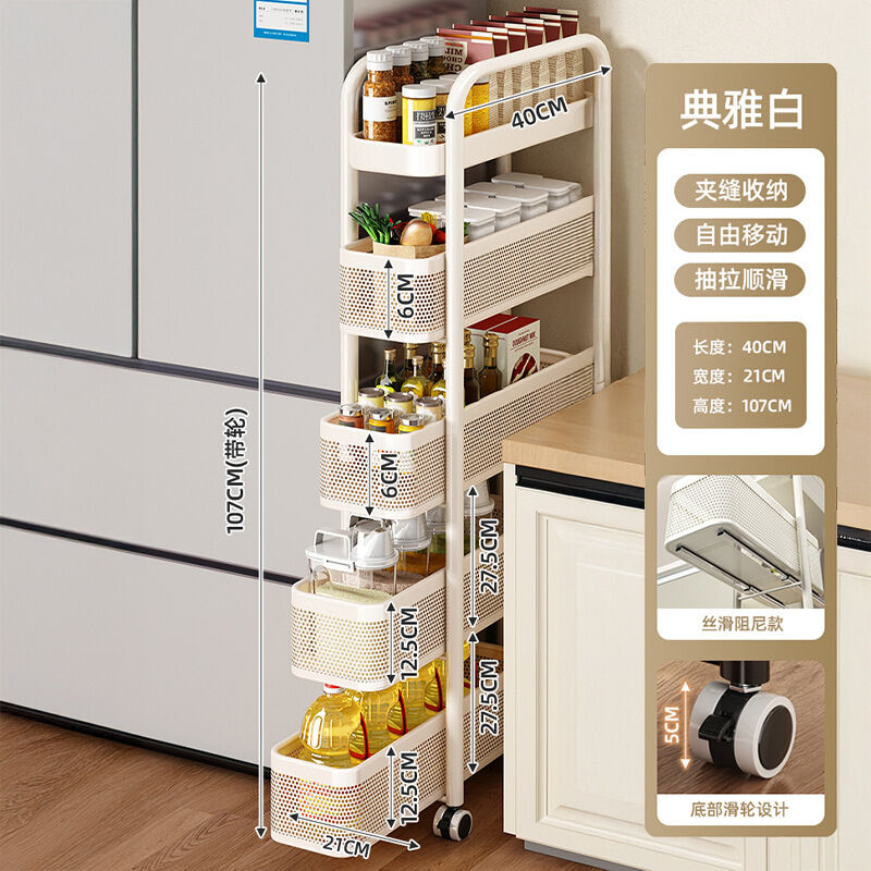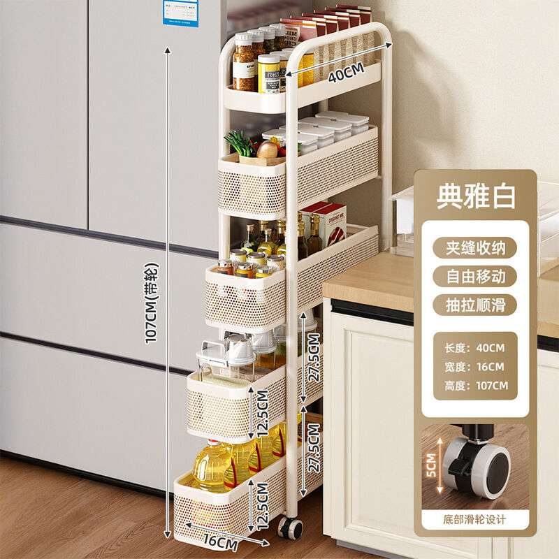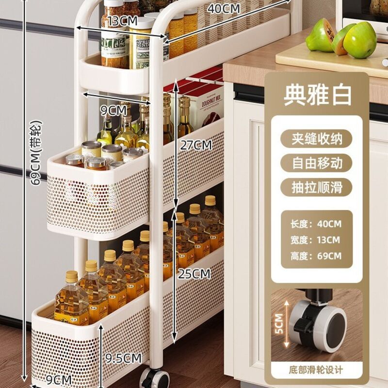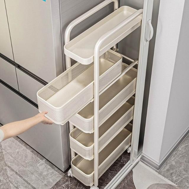 夾縫置物架廚房門後冰箱側面極窄縫抽拉籃縫隙收納櫃衛生間小推車