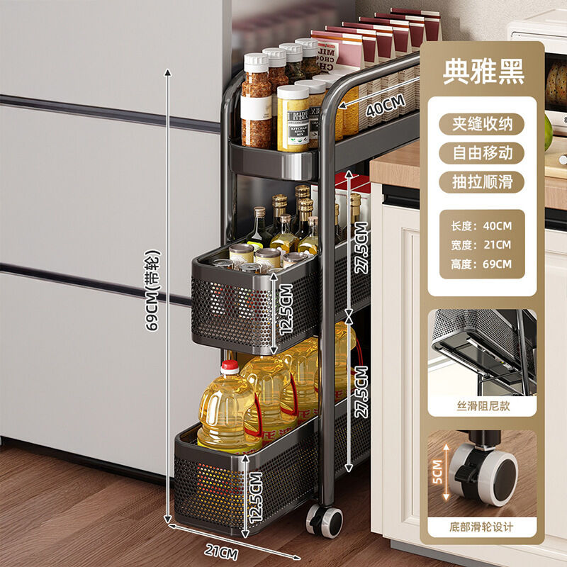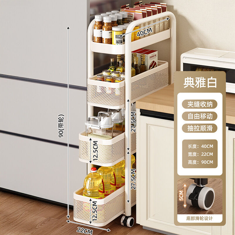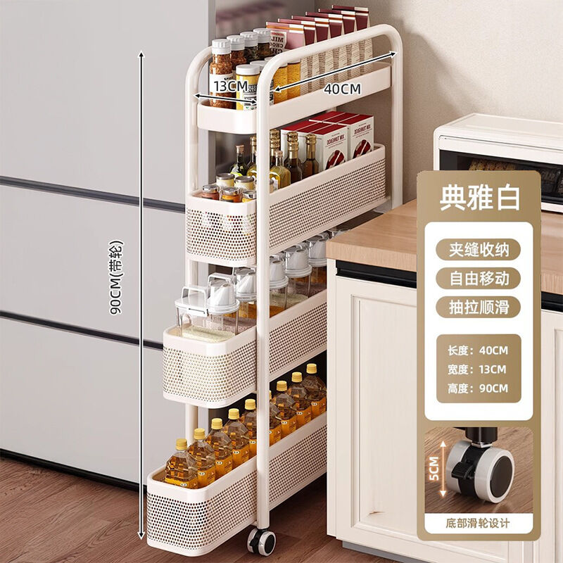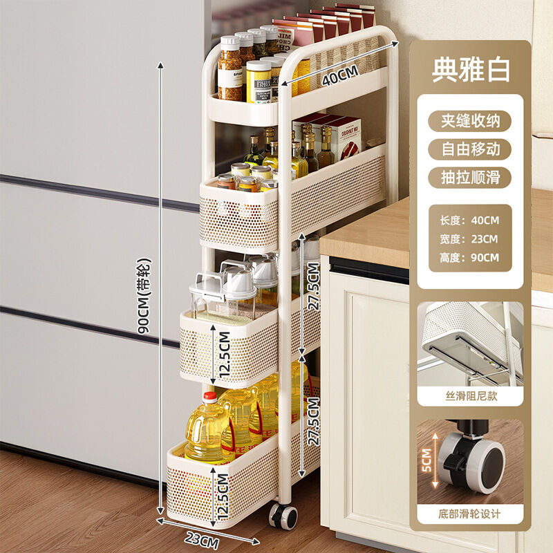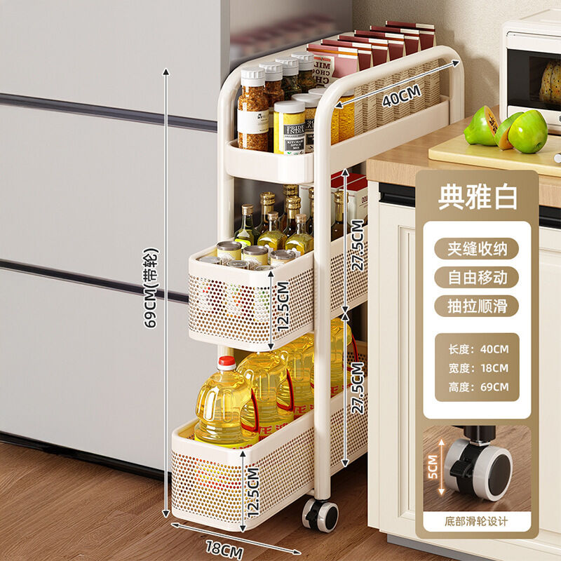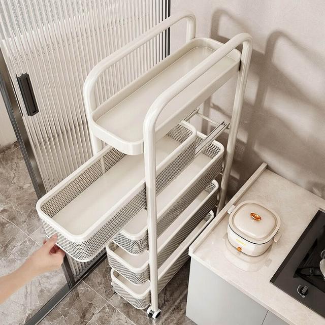 夾縫置物架廚房門後冰箱側面極窄縫抽拉籃縫隙收納櫃衛生間小推車