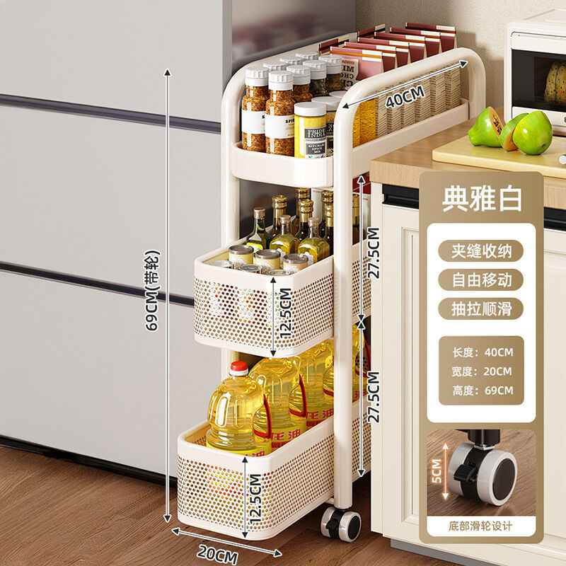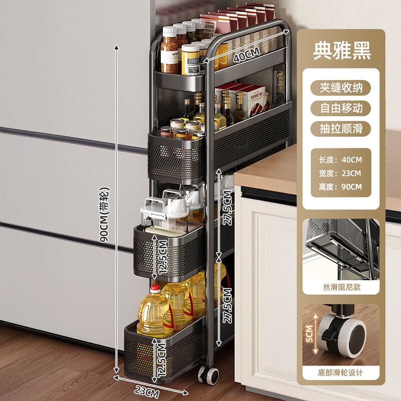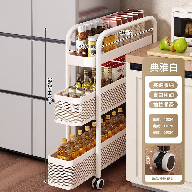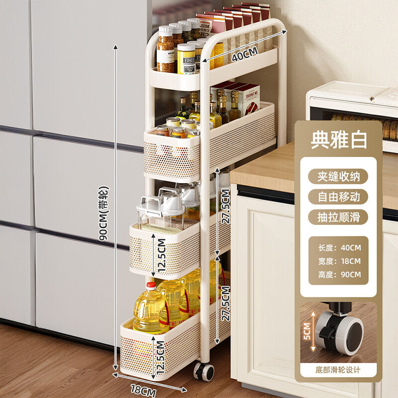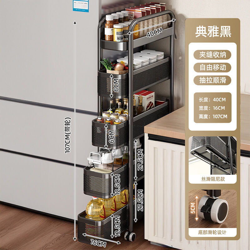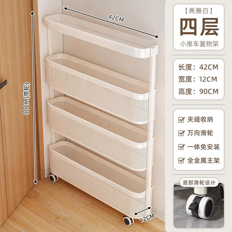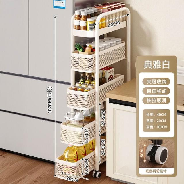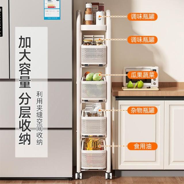 夾縫置物架廚房門後冰箱側面極窄縫抽拉籃縫隙收納櫃衛生間小推車