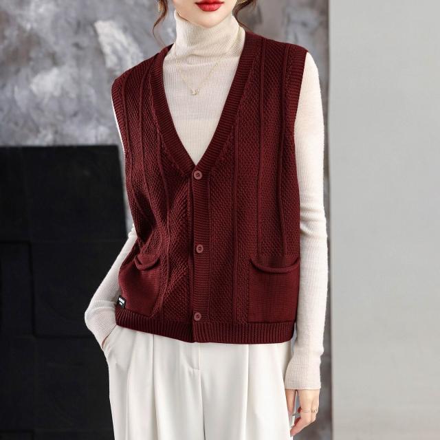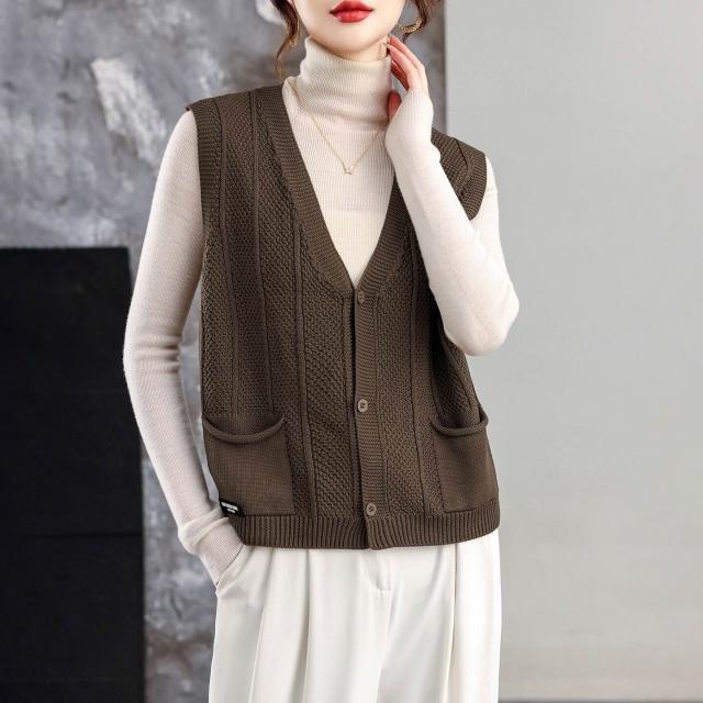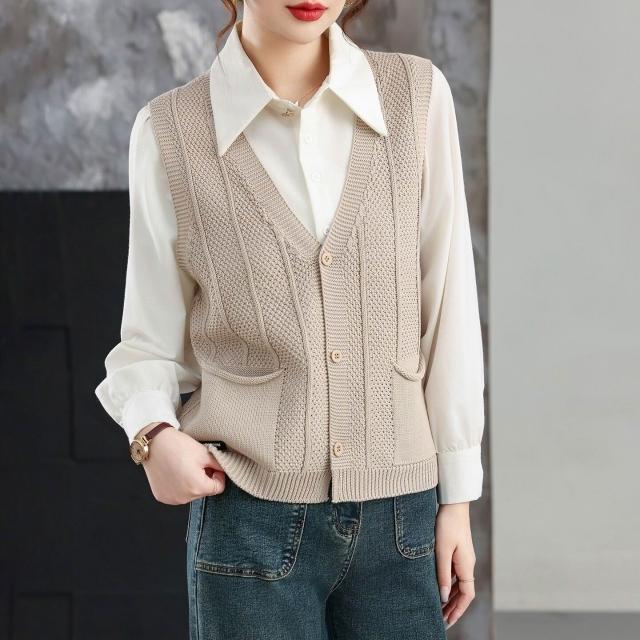 v領針織外搭馬甲背心女士春秋2025新款無袖上衣寬松毛衣坎肩開衫