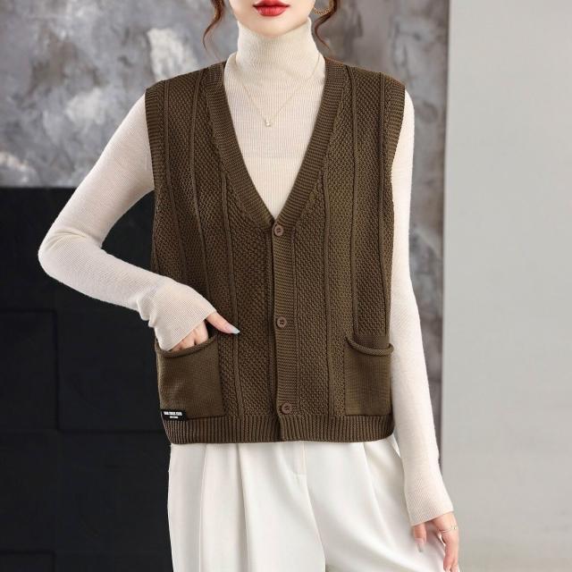 v領針織外搭馬甲背心女士春秋2025新款無袖上衣寬松毛衣坎肩開衫