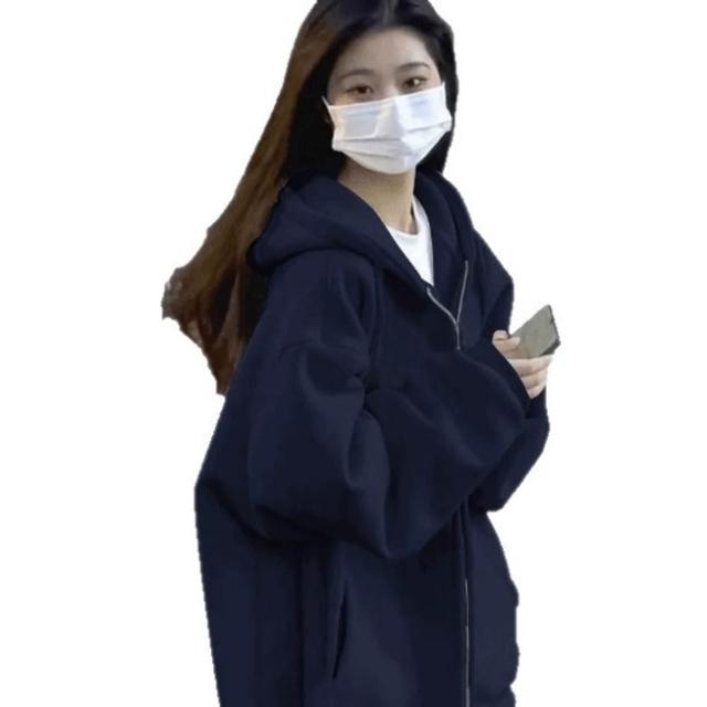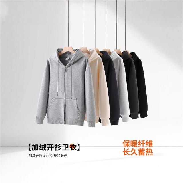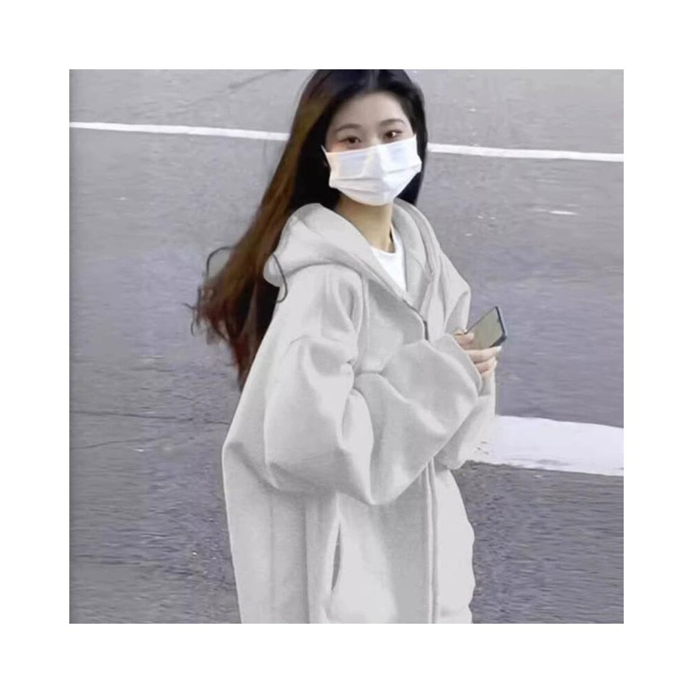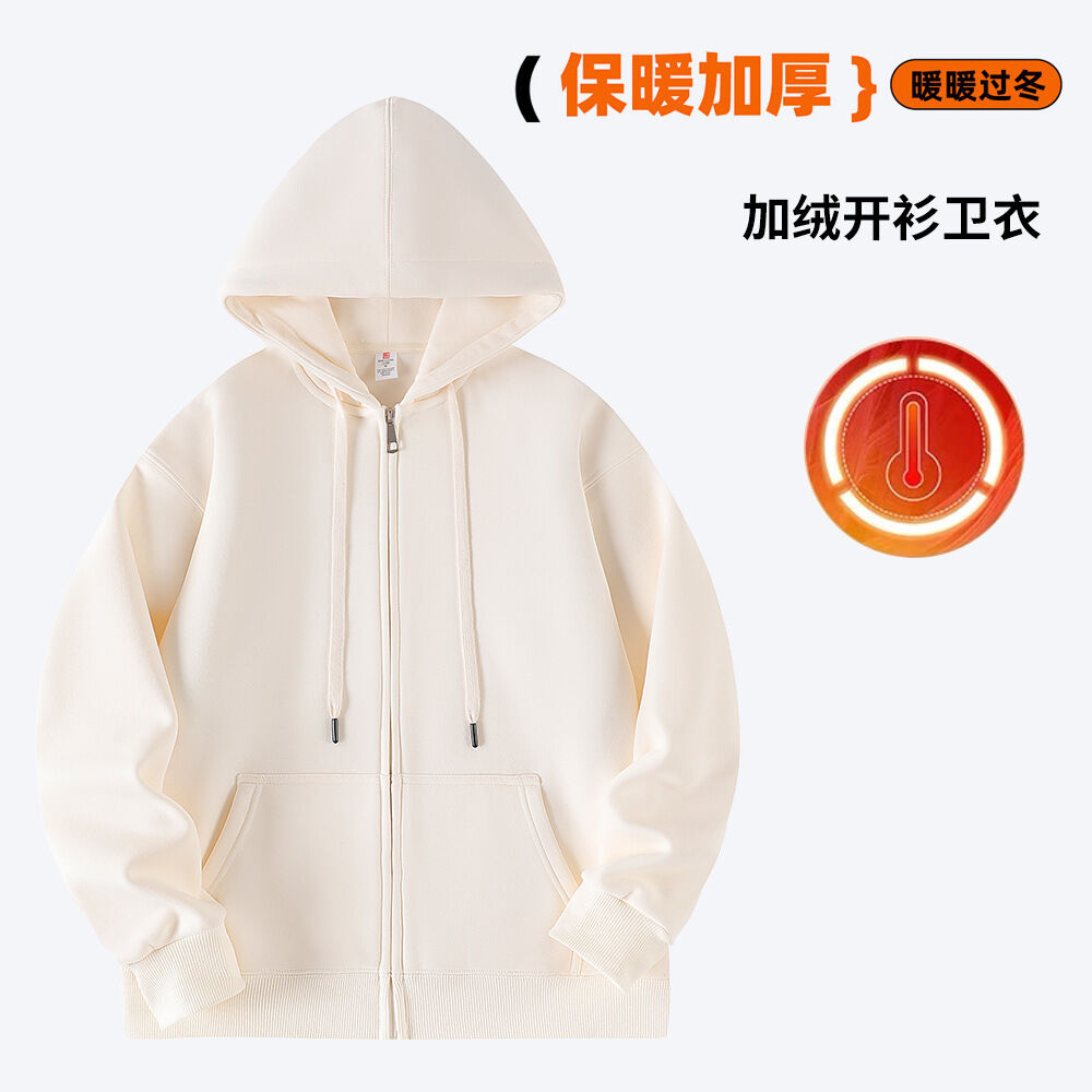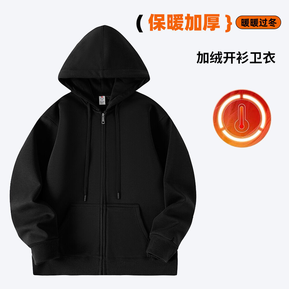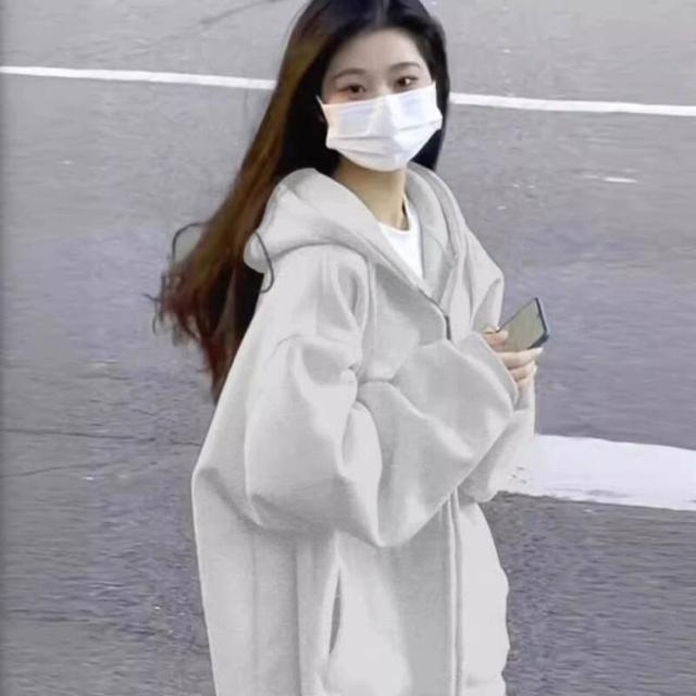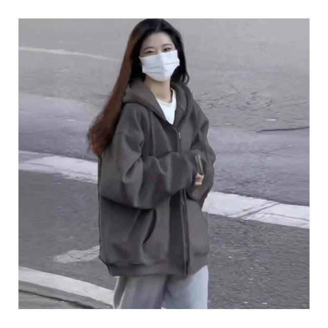 純色開衫衛衣外套女2025秋冬加絨美式復古慵懶風連帽寬松上衣男潮