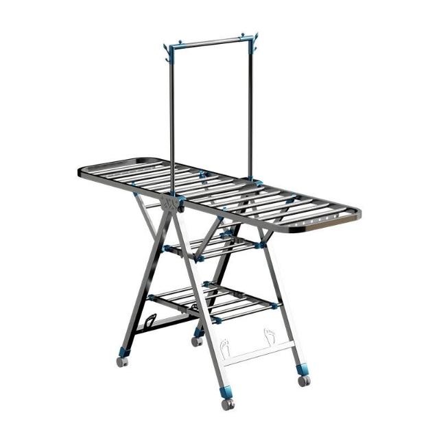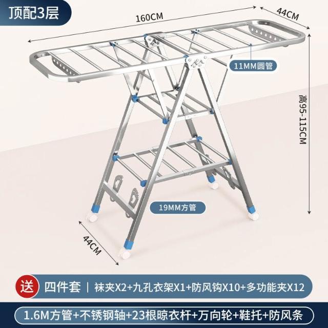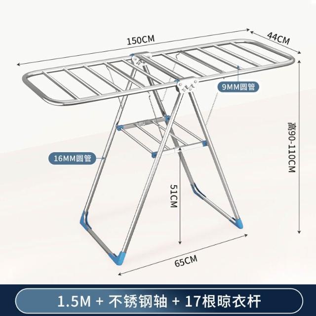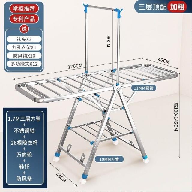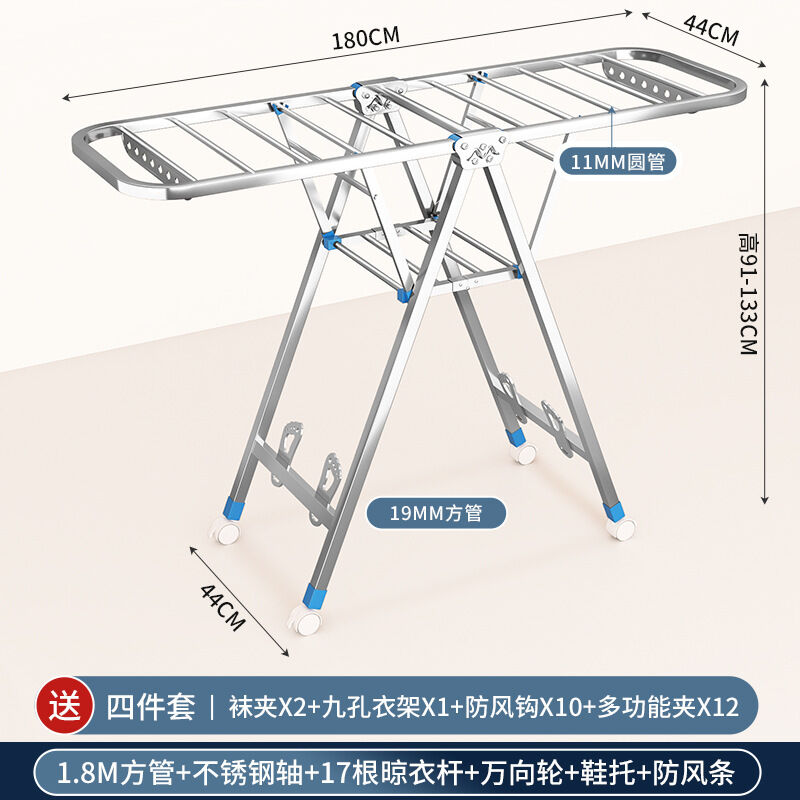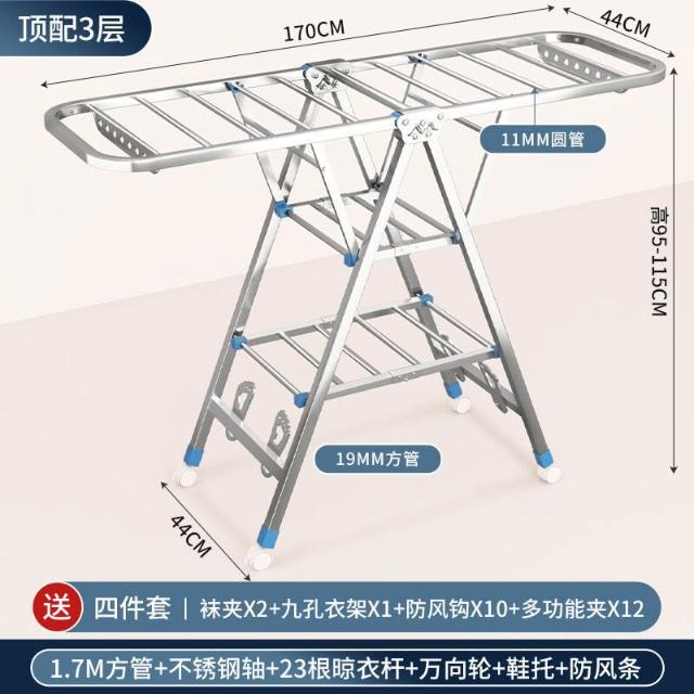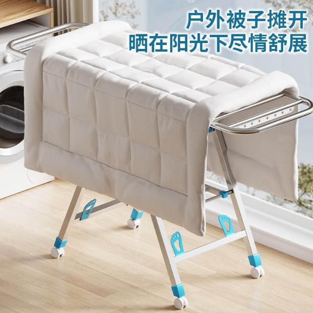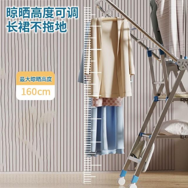 家用晾曬晾衣架不銹鋼折疊落地晾衣架加厚帶滑輪可移動陽臺曬衣架