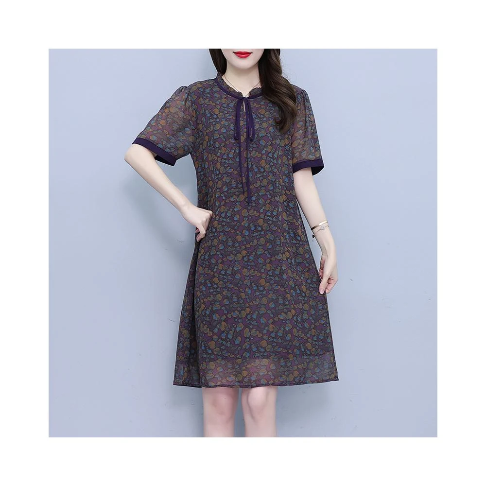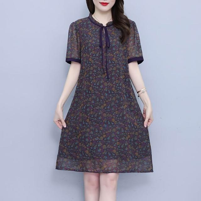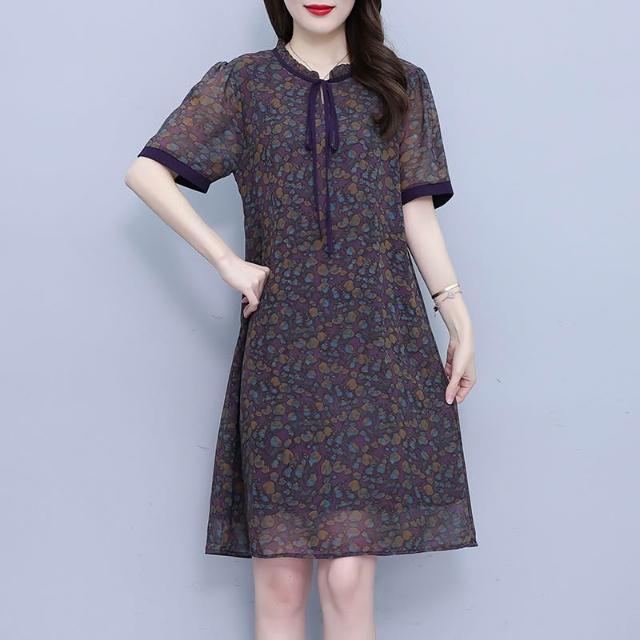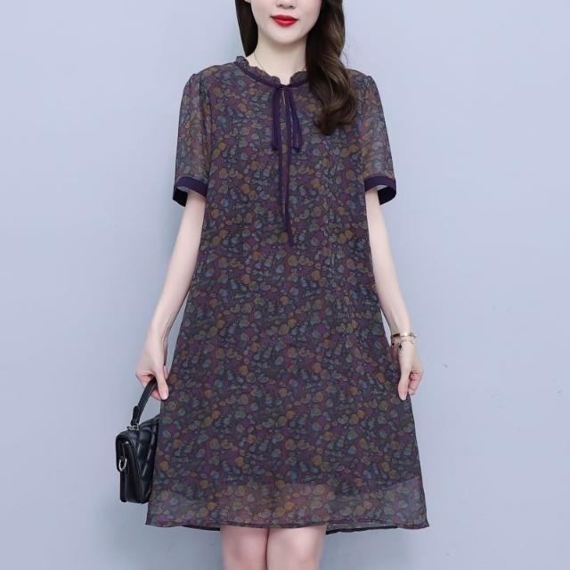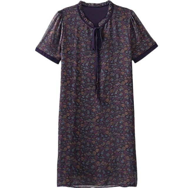 春夏裙子 連衣裙 長裙 真絲桑蠶絲連衣裙女夏季新款高端香雲紗寬松大碼中年媽媽碎花裙子 好夢想商鋪