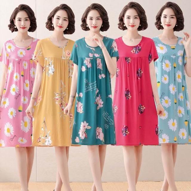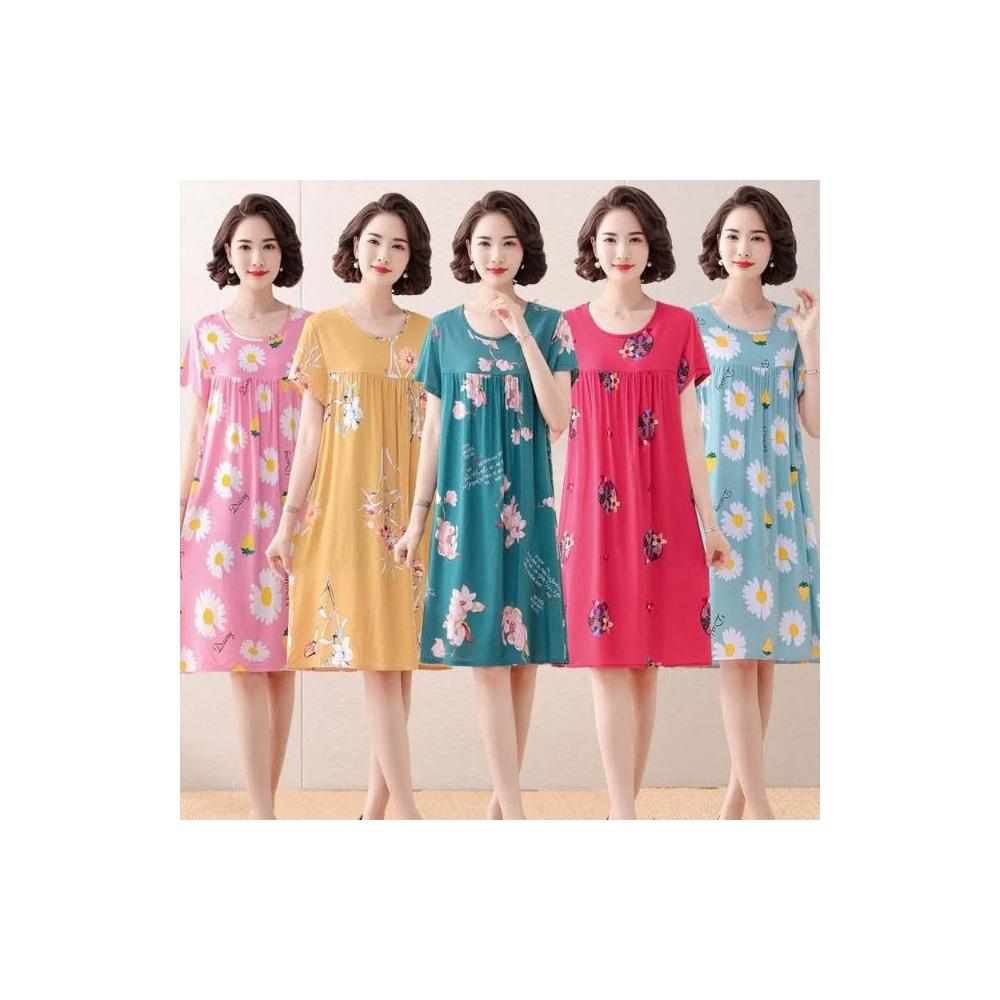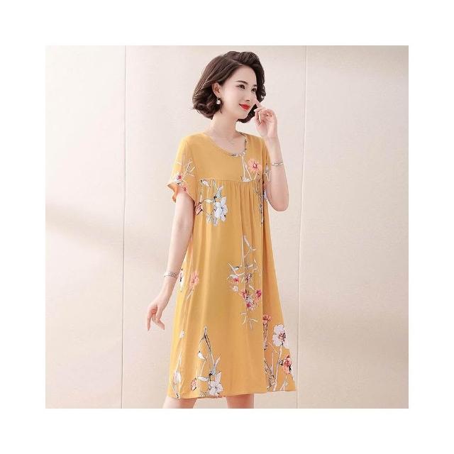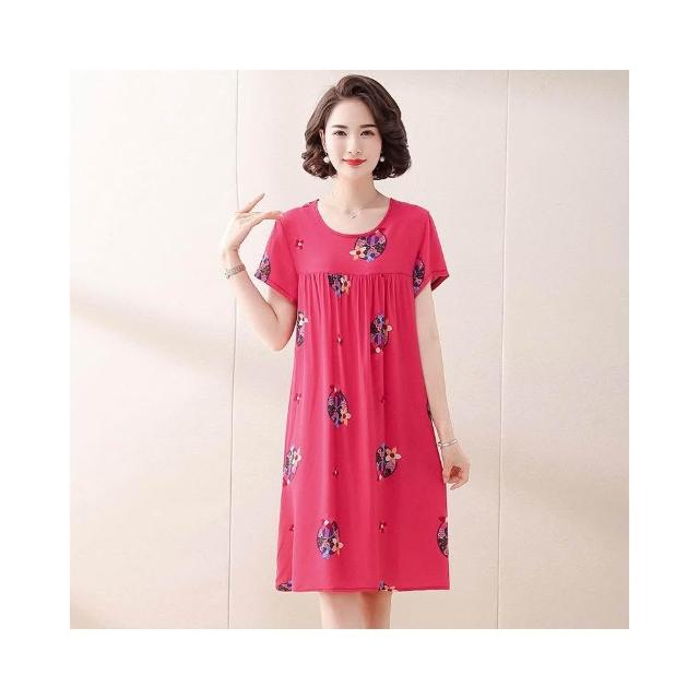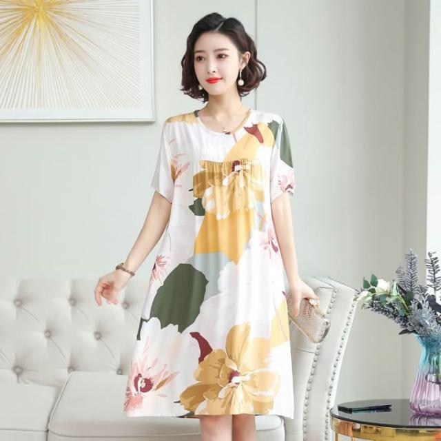 春夏女睡衣 睡裙 居家服 果子貍 中老年人睡裙女夏季睡衣植物花卉中長款大碼家居服媽媽裝 好夢想商鋪