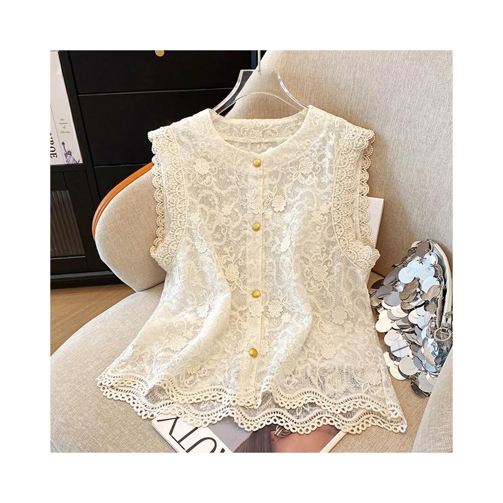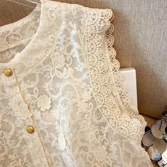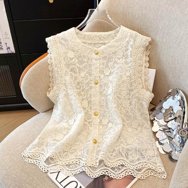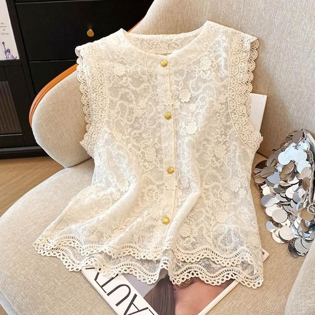 春夏上衣 短袖 高端歐貨夏季新款設計感小眾蕾絲鉤花拼接無袖馬甲洋氣背心小衫女 好夢想商鋪