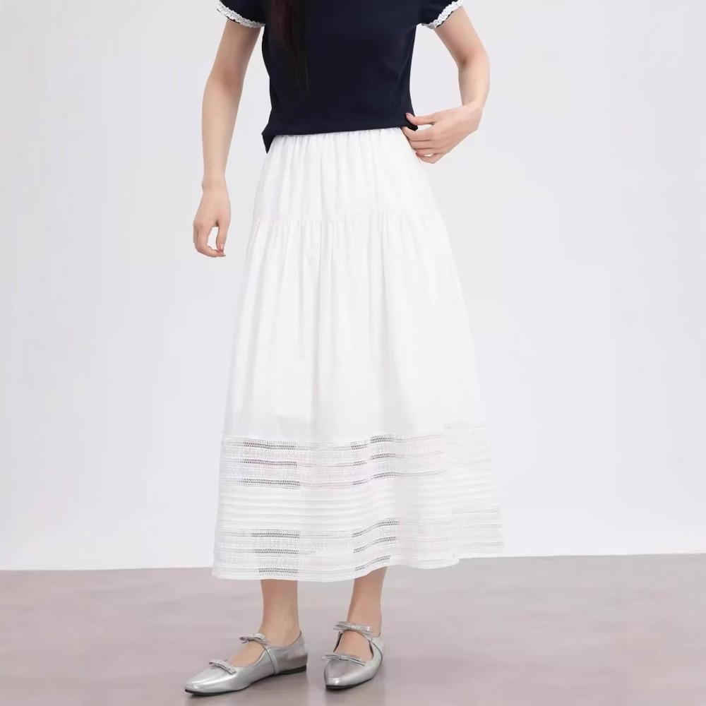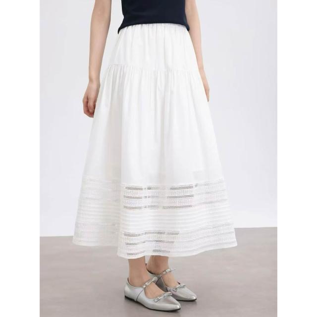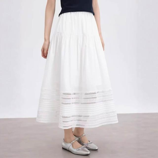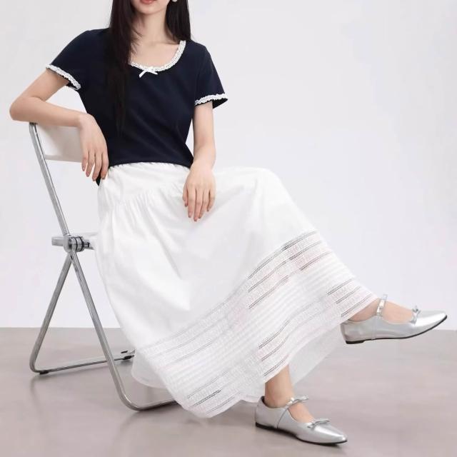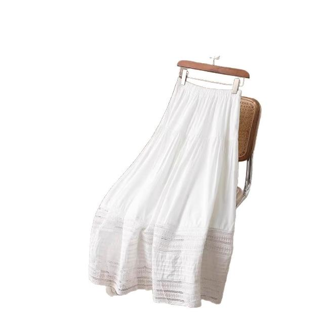夏季裙子 半身裙 休閒裙 法式白色半身裙女2026春夏新款棉質設計感蕾絲邊氣質a字中長裙子 好夢想商鋪