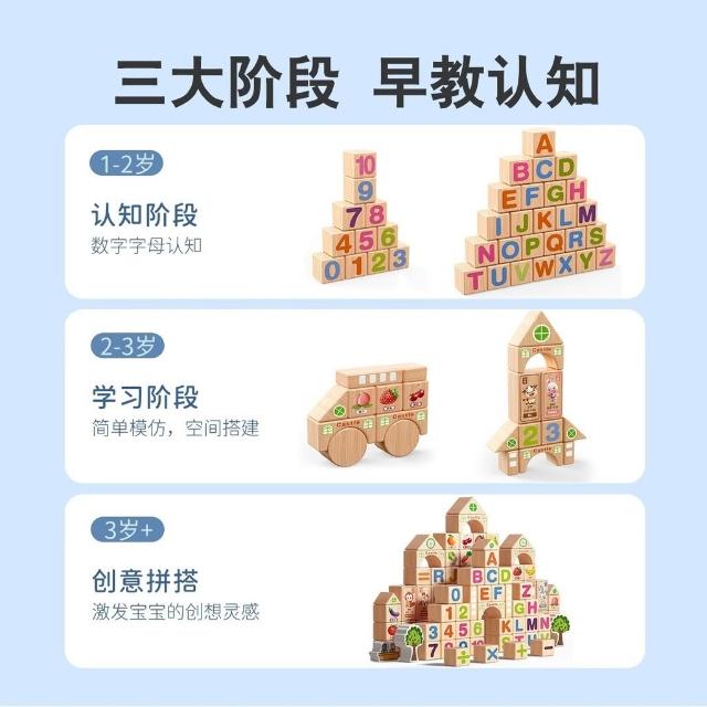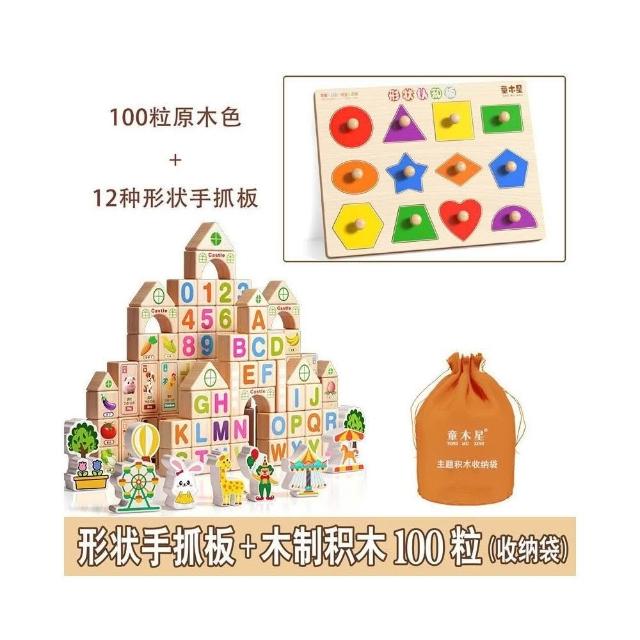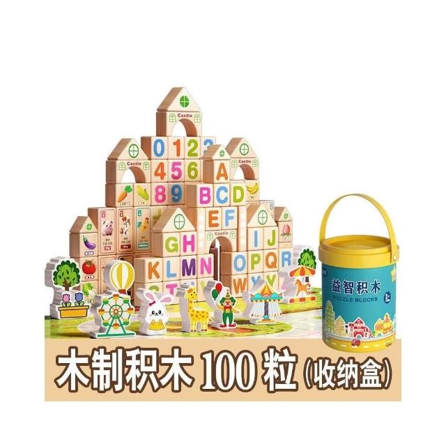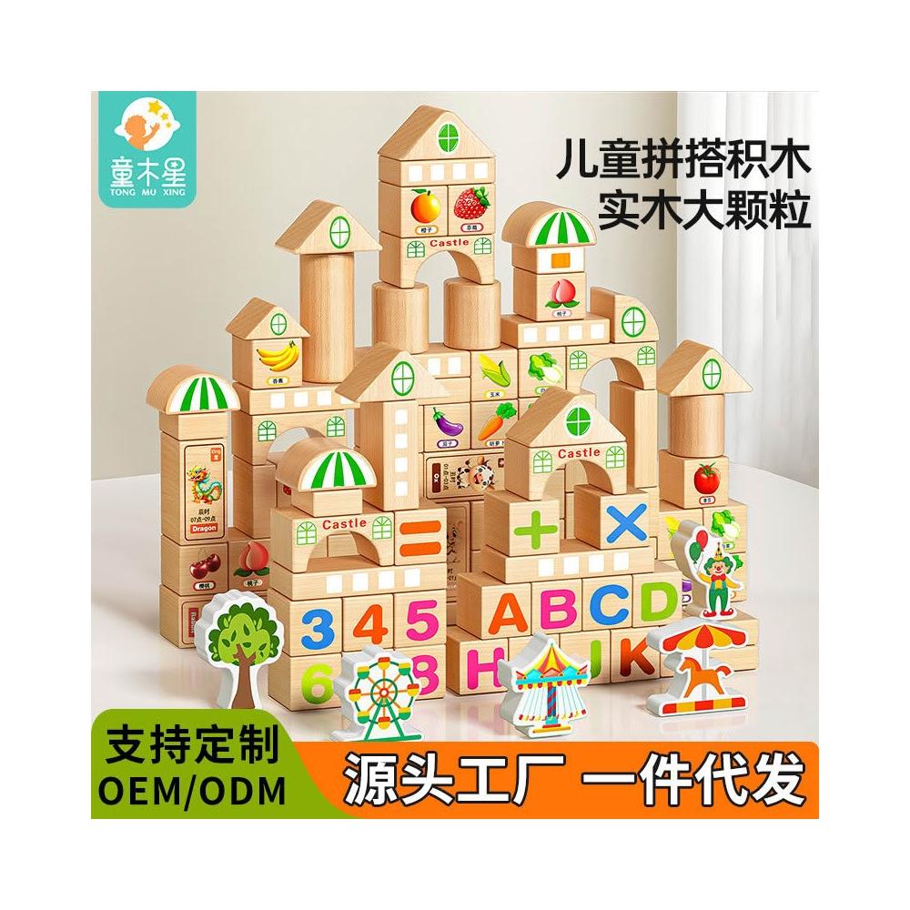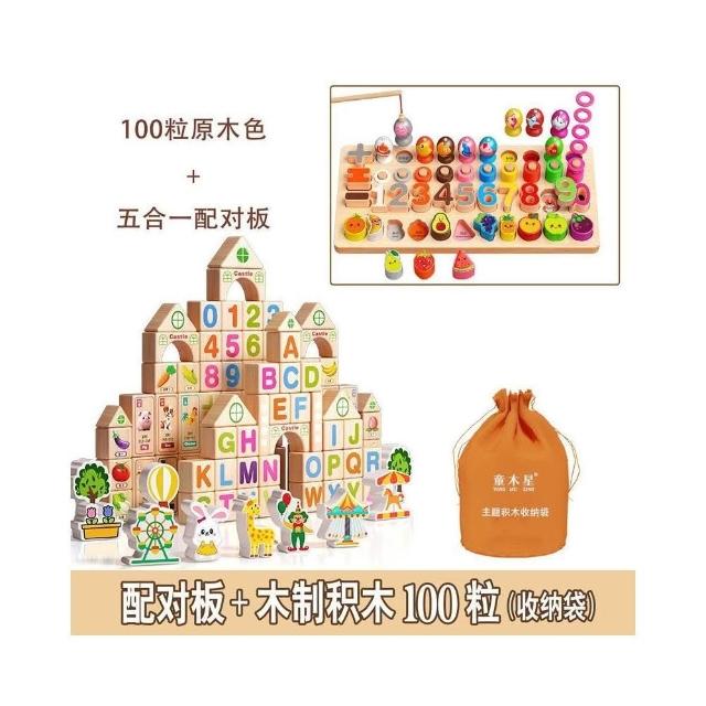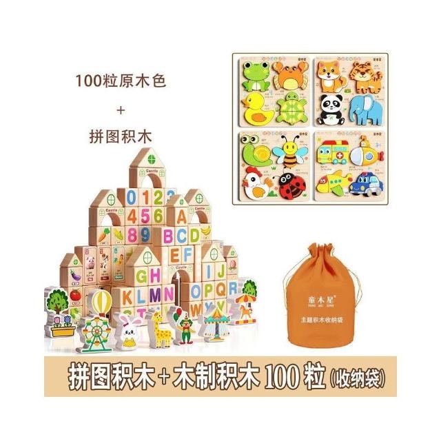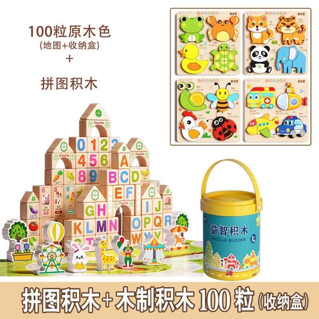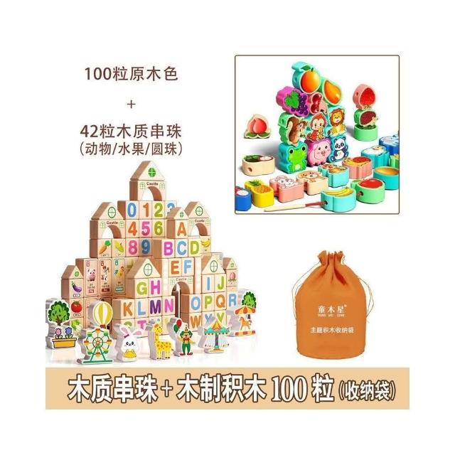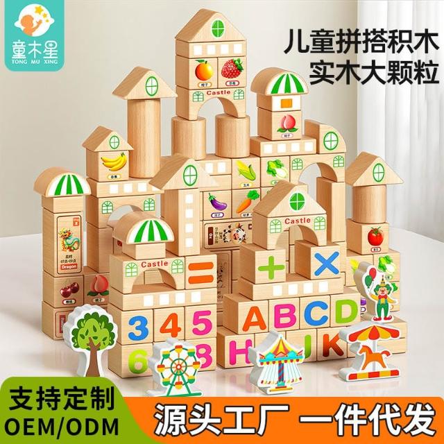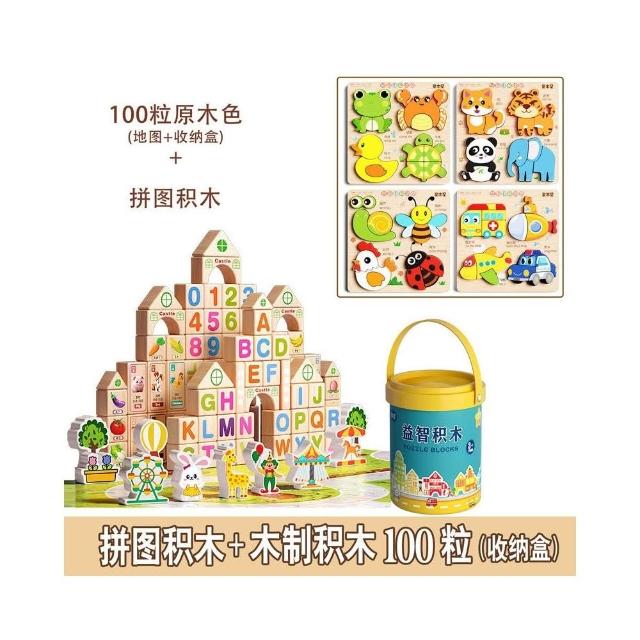 兒童益智動腦開發智力大顆粒實木積木男孩女孩3到6歲拼裝搭建玩具
