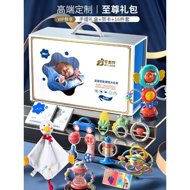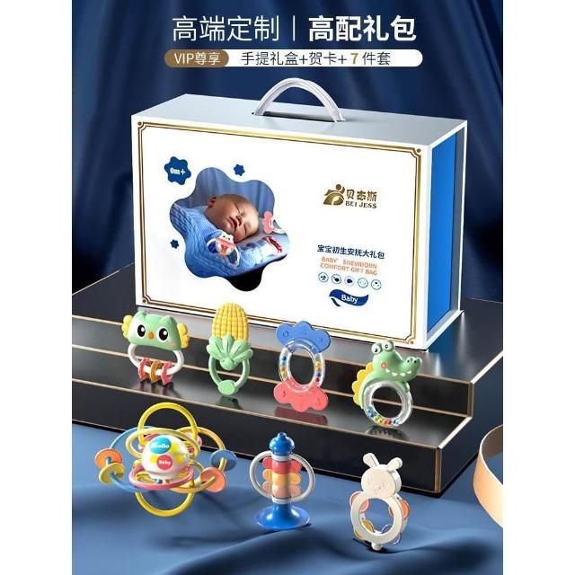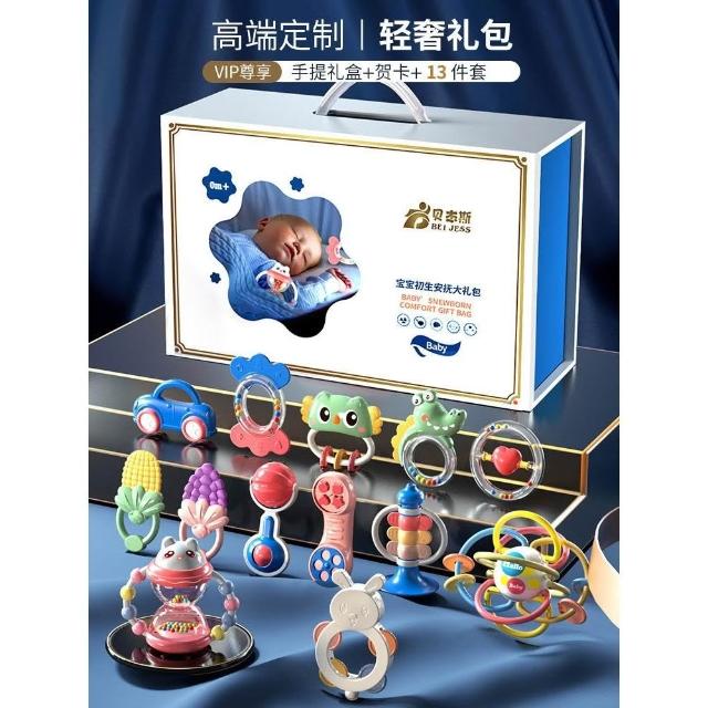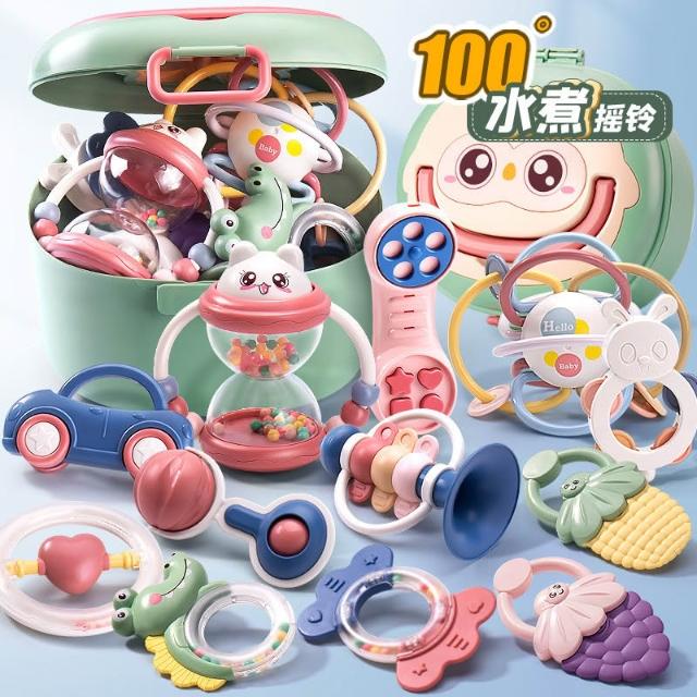 嬰幼兒搖鈴玩具可水煮益智牙膠可啃咬新生寶寶手搖鈴帶收納盒送禮