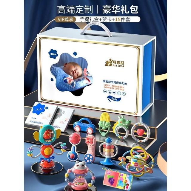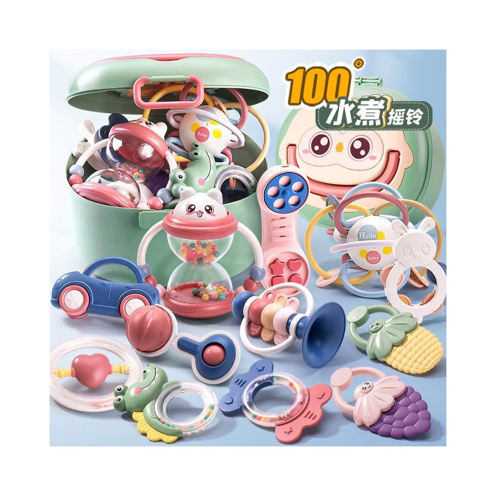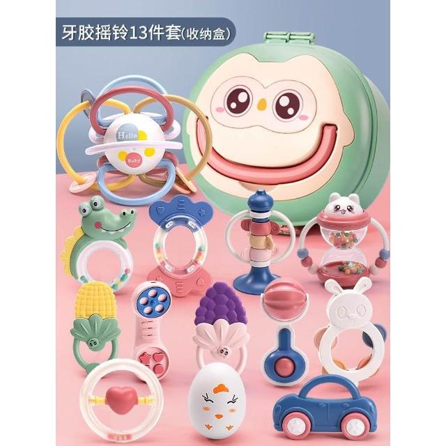 嬰幼兒搖鈴玩具可水煮益智牙膠可啃咬新生寶寶手搖鈴帶收納盒送禮