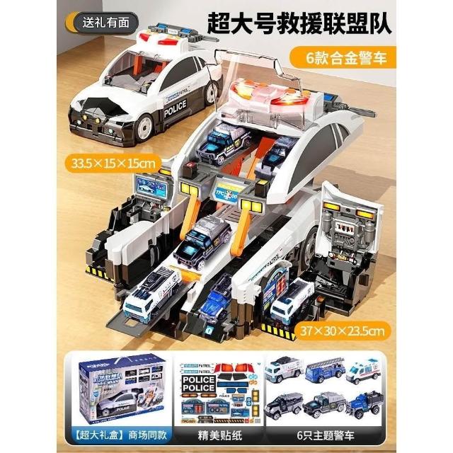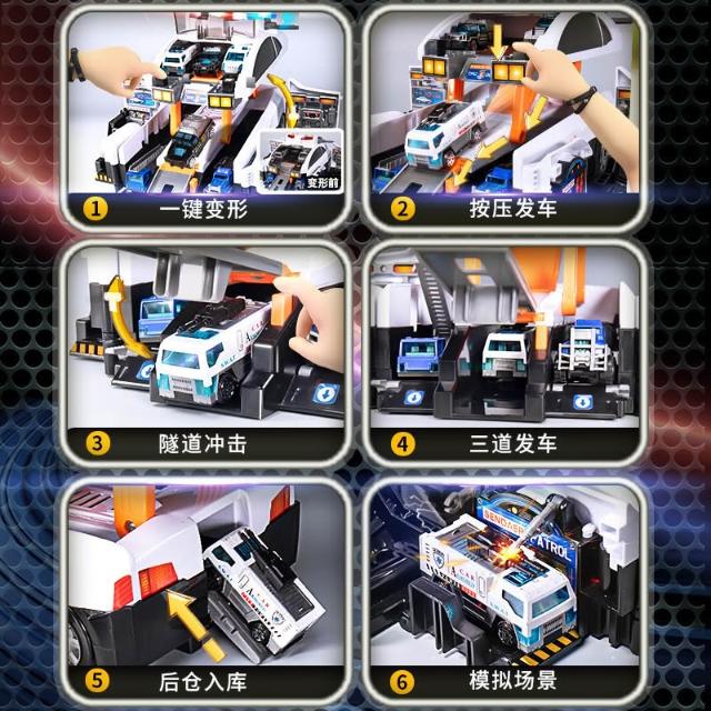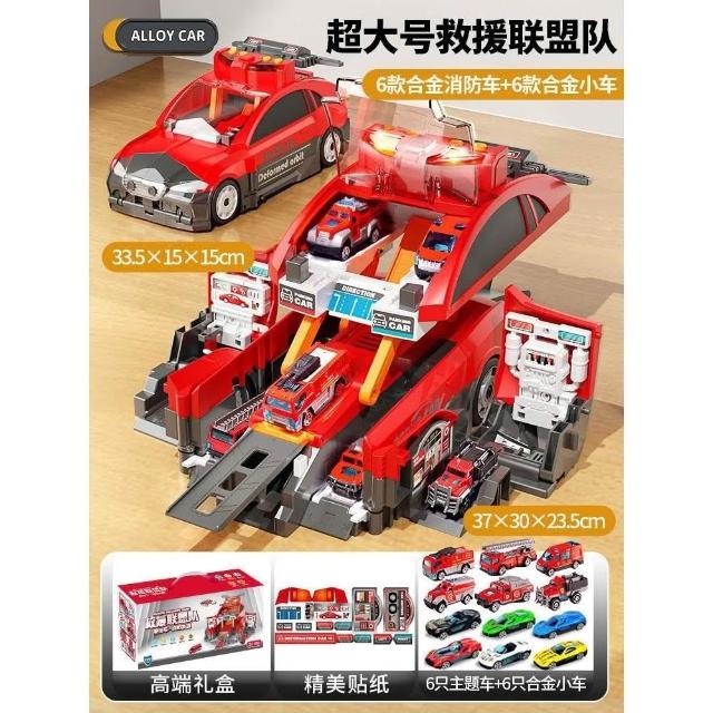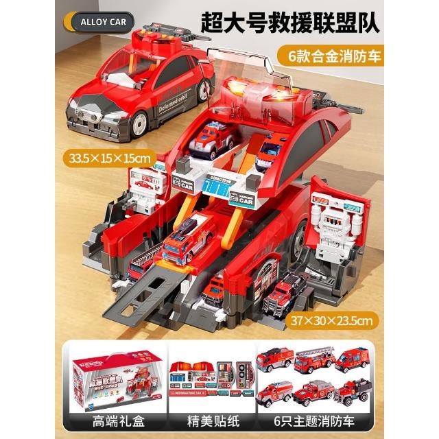 新款兒童收納場景消防警車變形彈射軌道停車場聲光益智模型玩具車