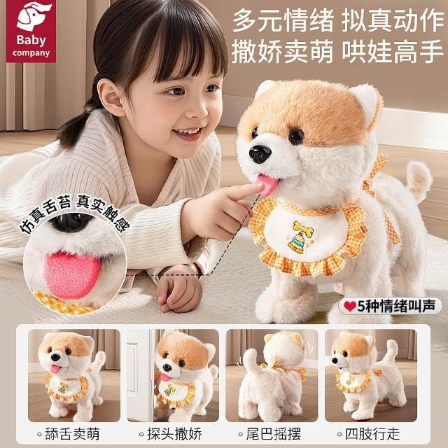 2026兒童電動仿真毛絨玩具狗狗走路會叫會動學說話男孩女孩舔舔電子狗