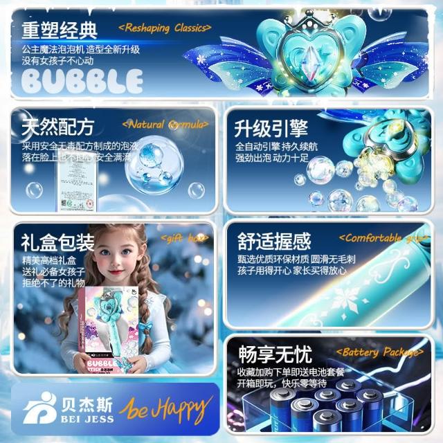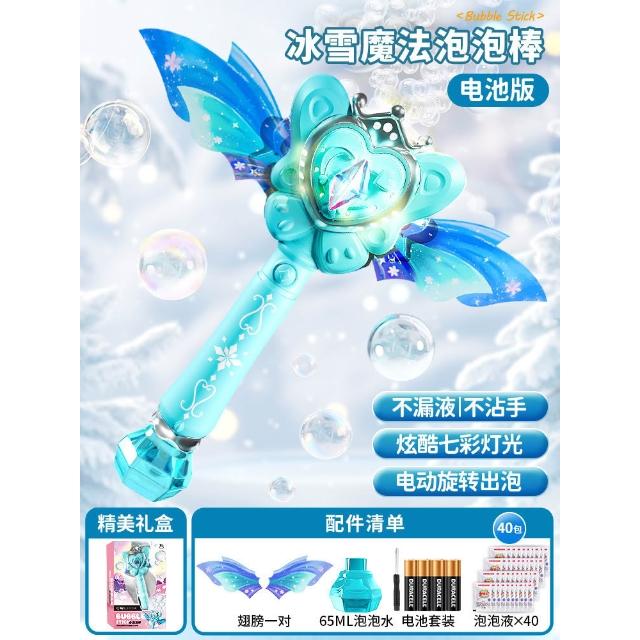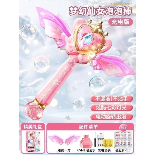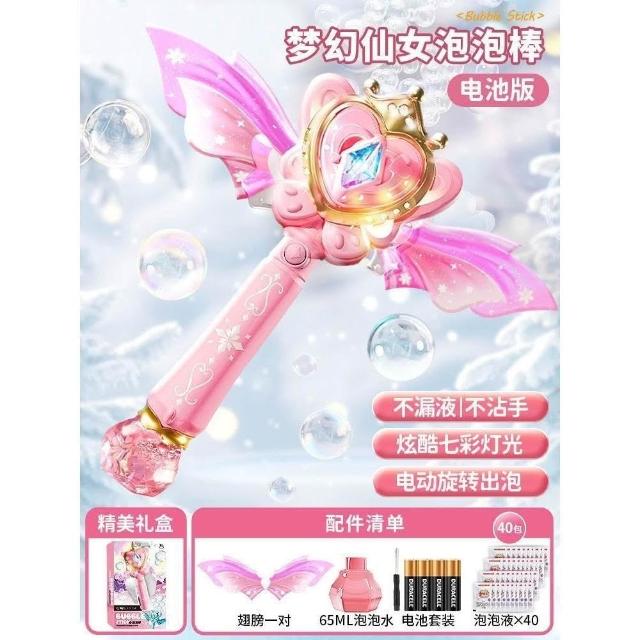 網紅公主魔法棒泡泡機仙女手持發光音樂防漏全自動泡泡棒女孩玩具