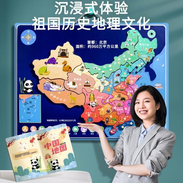 兒童益智磁力地圖發聲拼裝小學科教雙面磁性中國超大拼圖地圖玩具