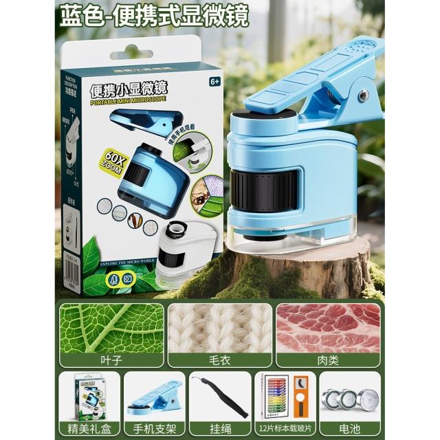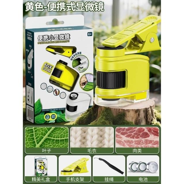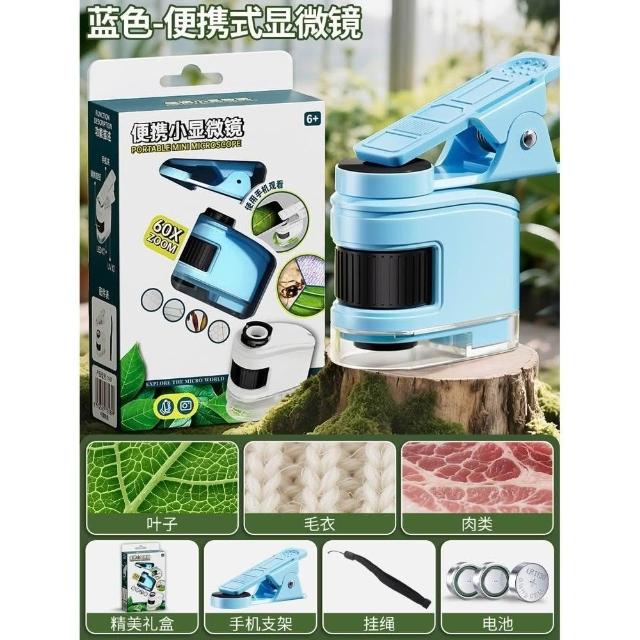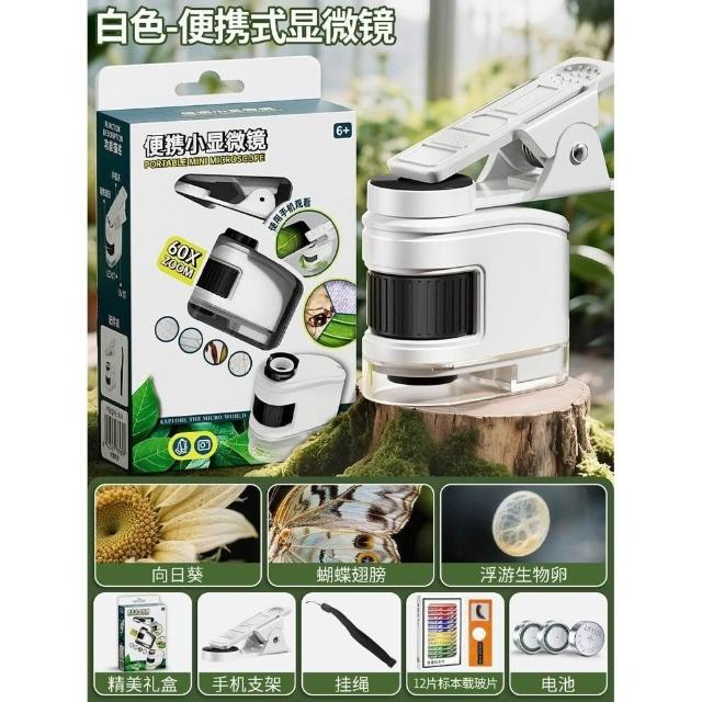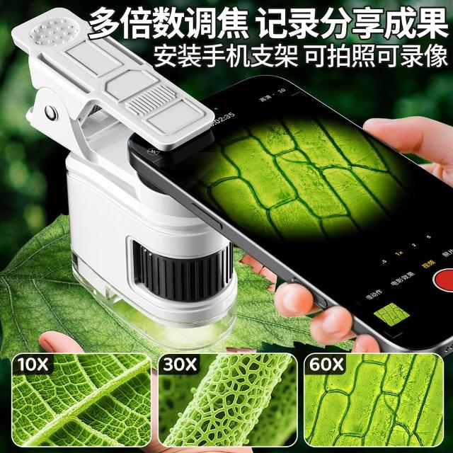 科教玩具兒童便攜式顯微鏡帶手機夾學生科學實驗古玩珠寶鑑定迷你