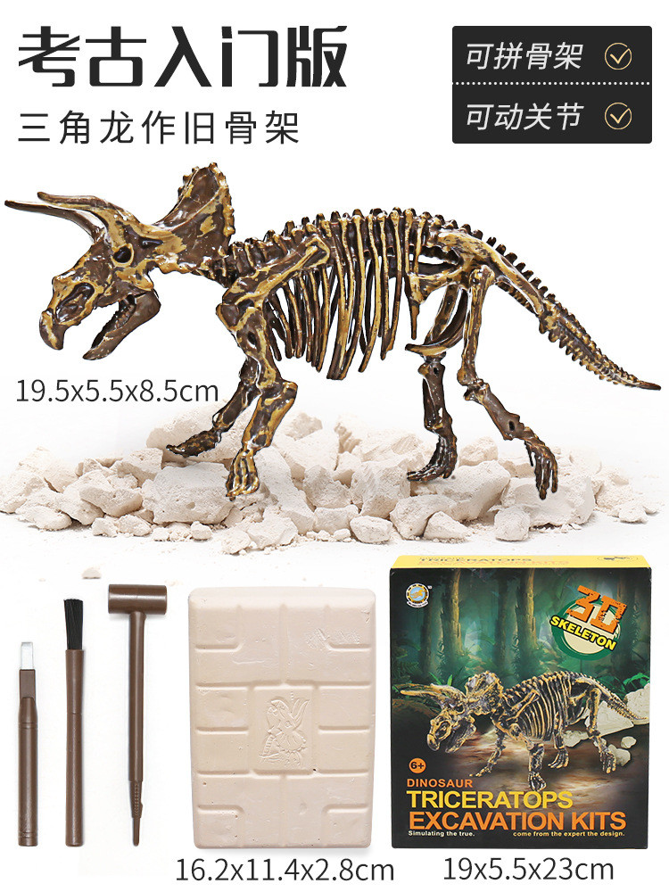 兒童仿真恐龍考古化石玩具益智挖掘動物軟骨架模型拼接男孩霸王龍