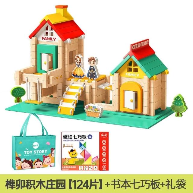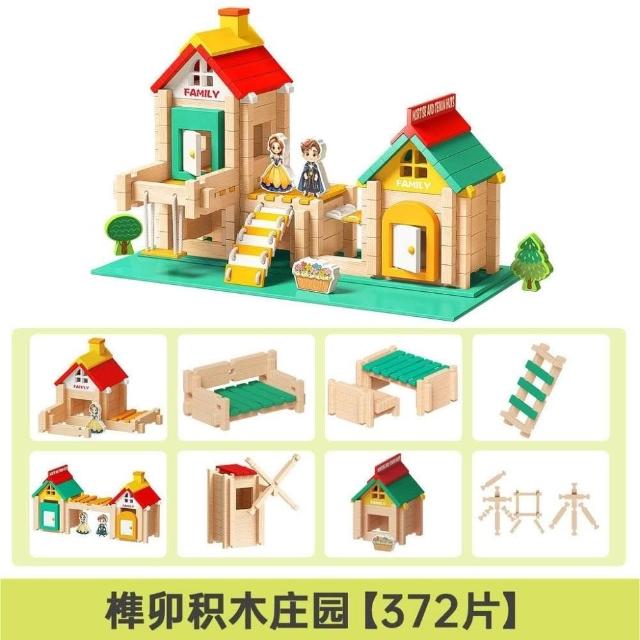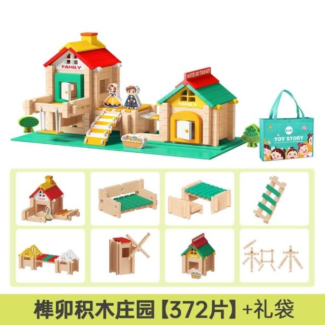 魯班榫卯積木益智玩具小建築師大顆粒木製建築結構拼裝兒童搭房子