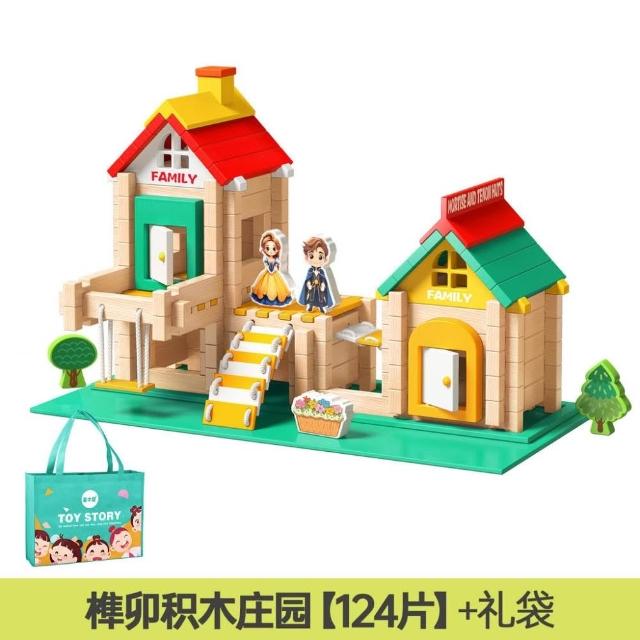 魯班榫卯積木益智玩具小建築師大顆粒木製建築結構拼裝兒童搭房子