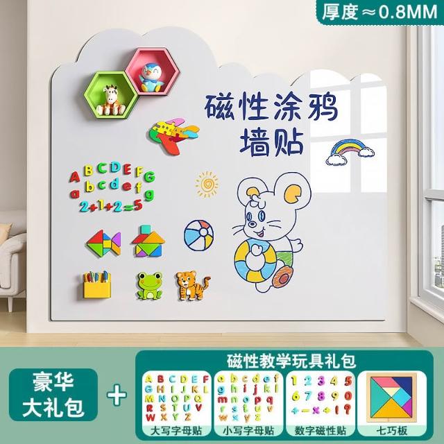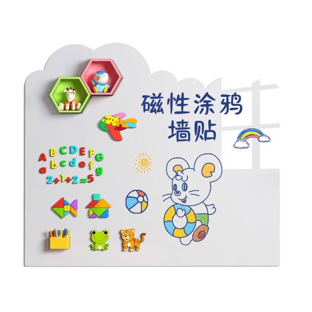 軟白板牆貼兒童塗鴉畫板牆磁性學習繪畫小黑板可移除不傷磁性畫板